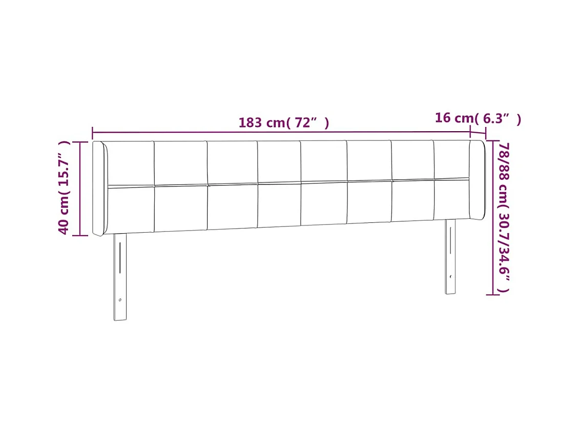 Hoofdbord met vleugels Donkergrijs 183x16x78/88 cm Fluweel