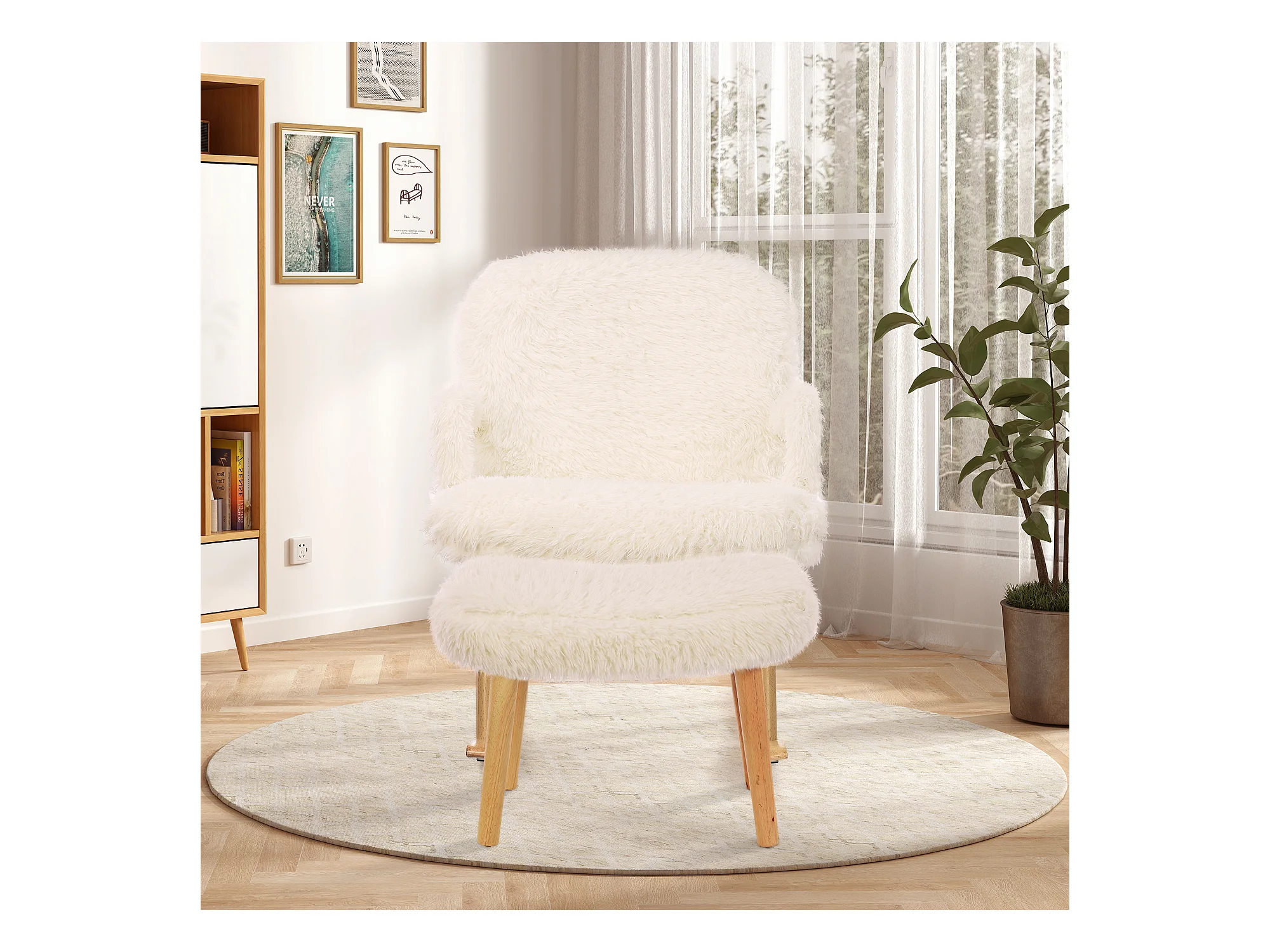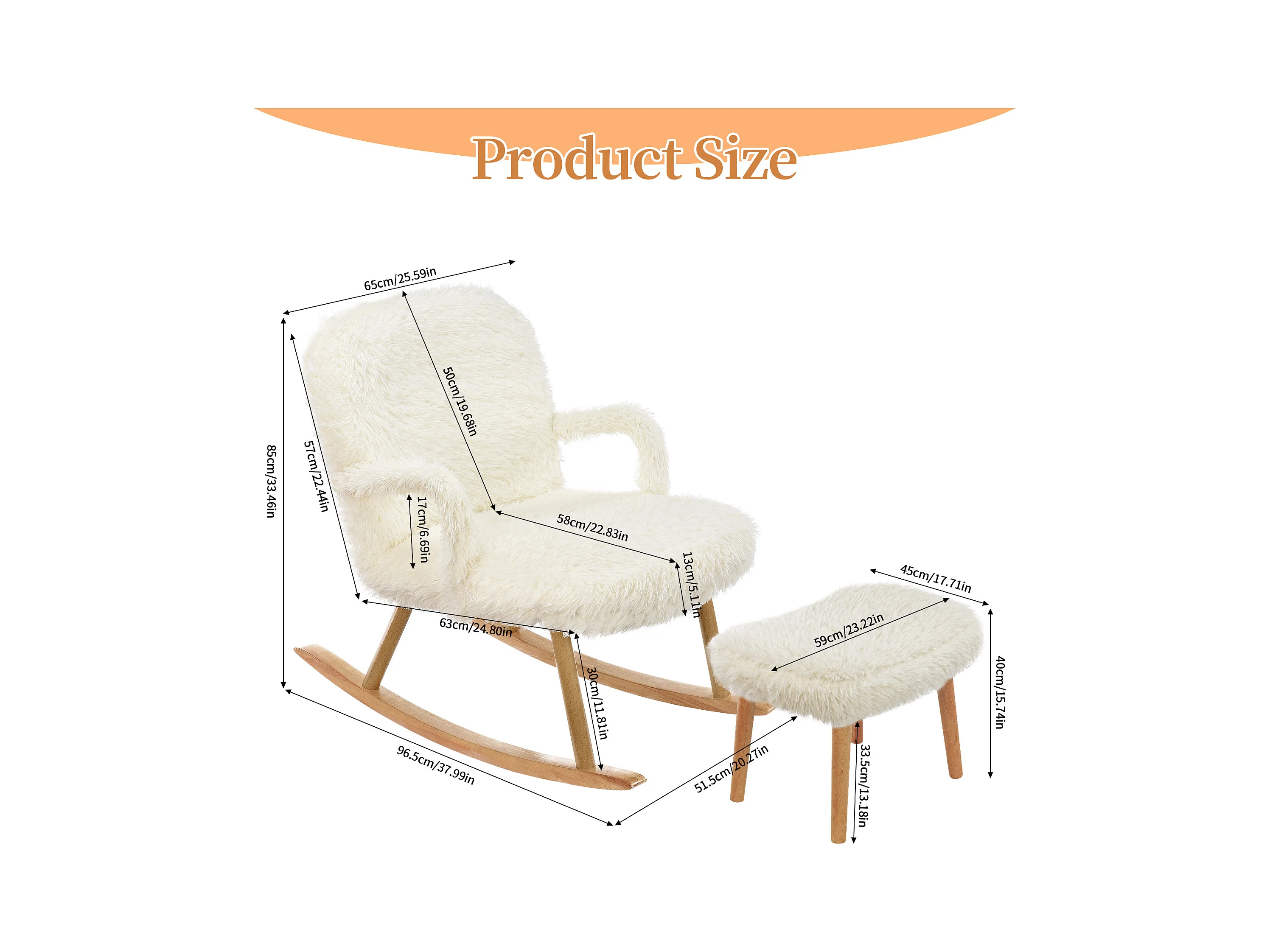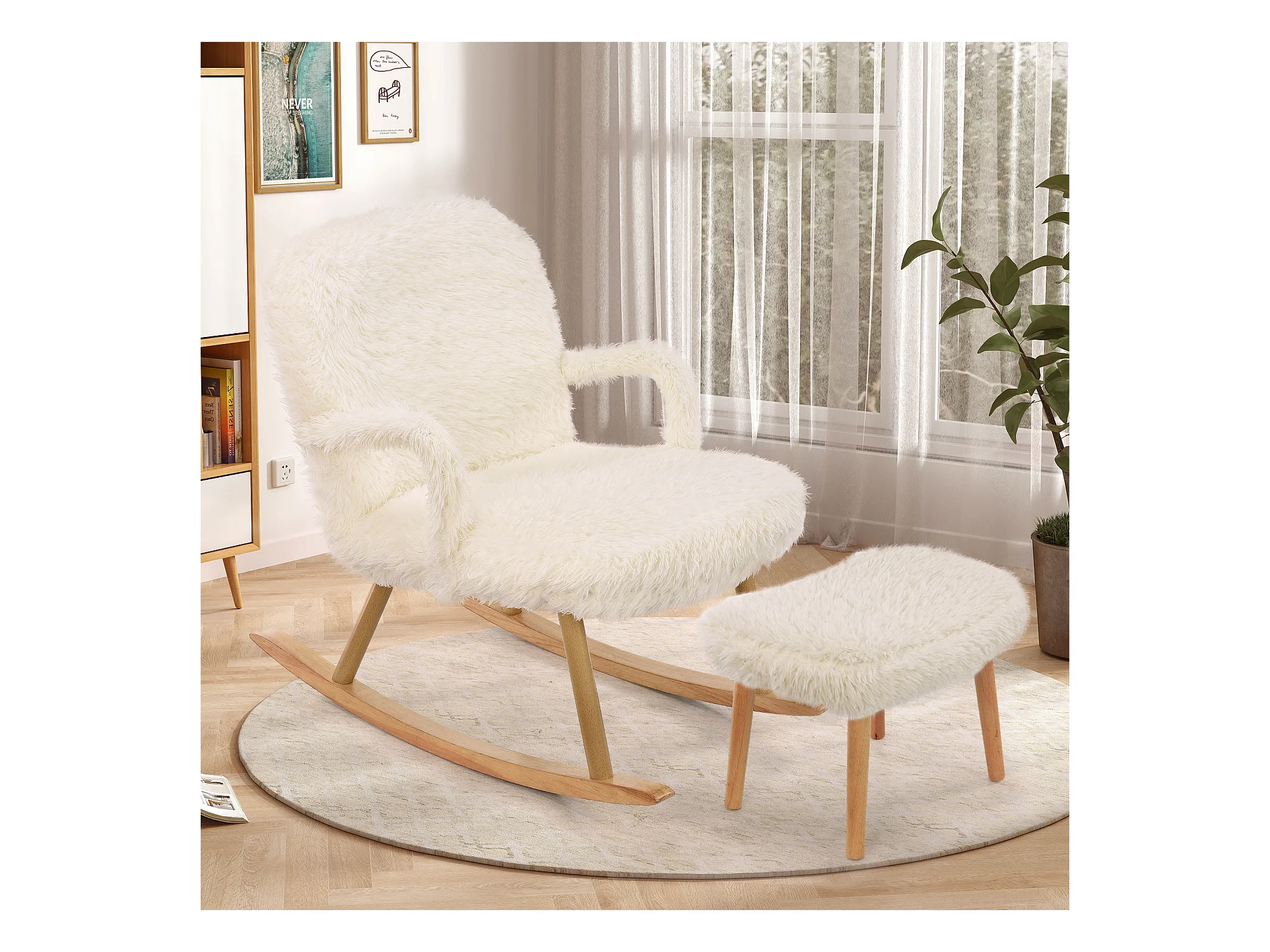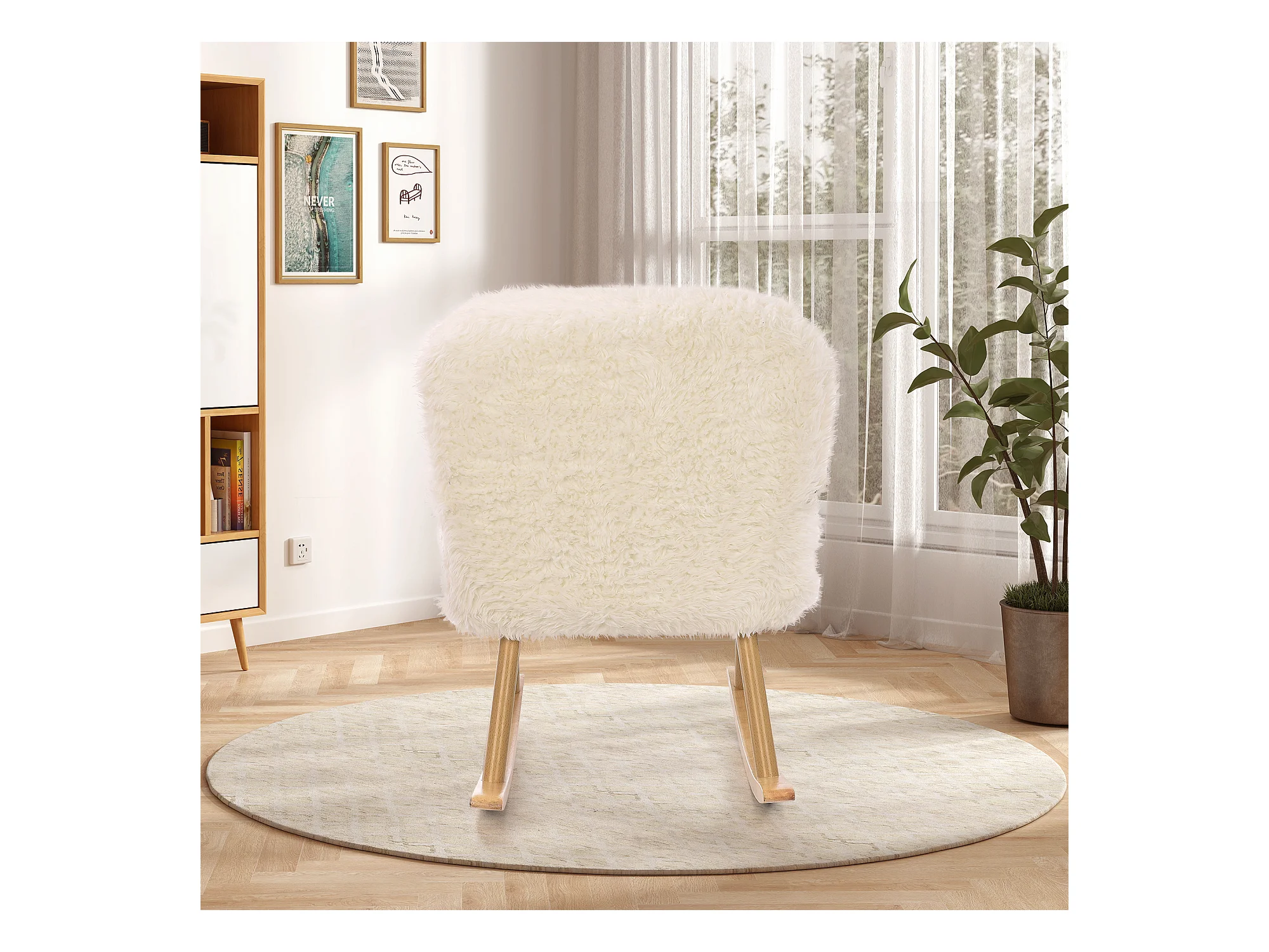 Teddy Plush Rocking Chair - Schommelstoel met voetenbankje, poten van massief hout - comfortabel 65x96,5x85cm - Wit