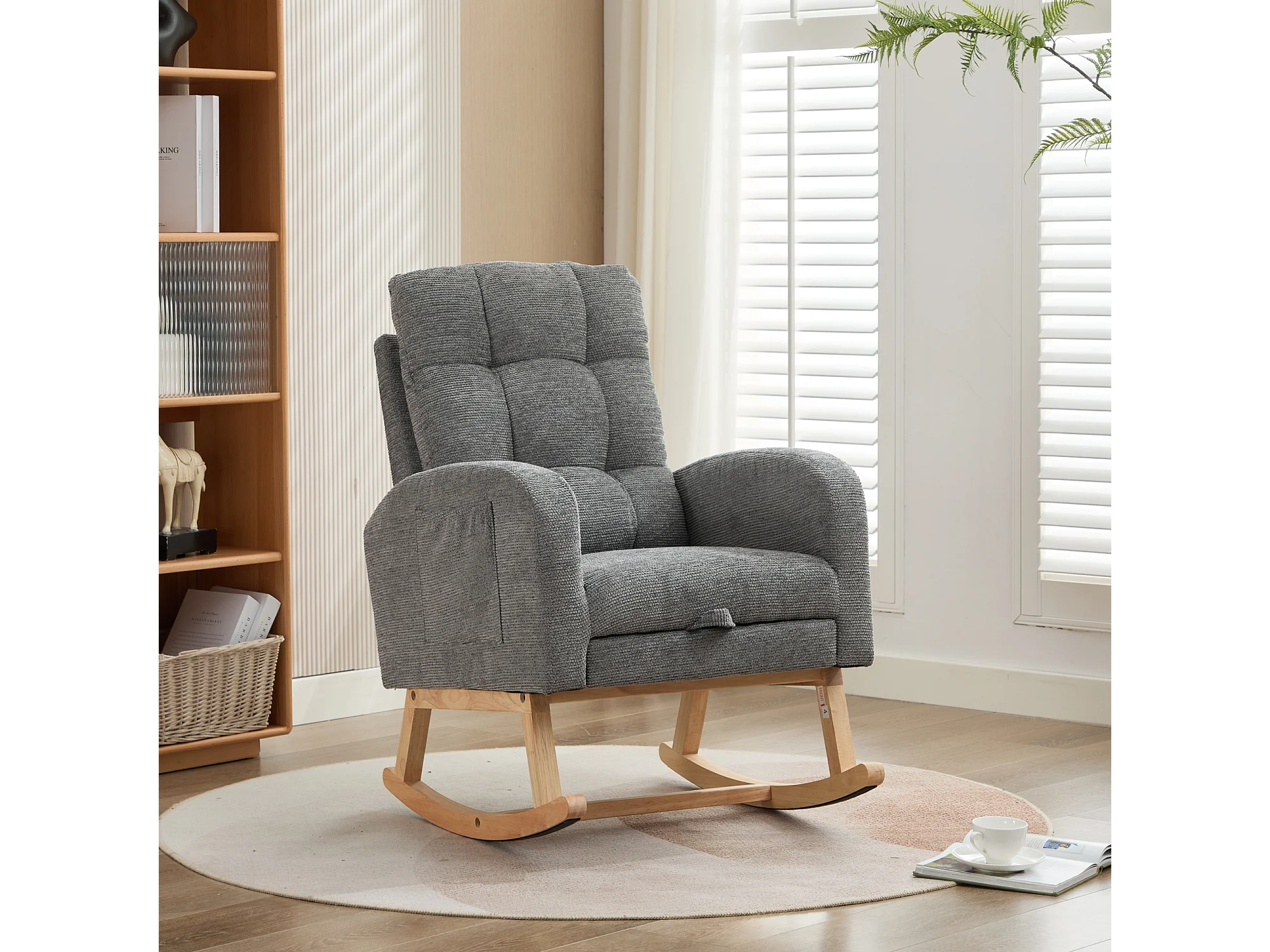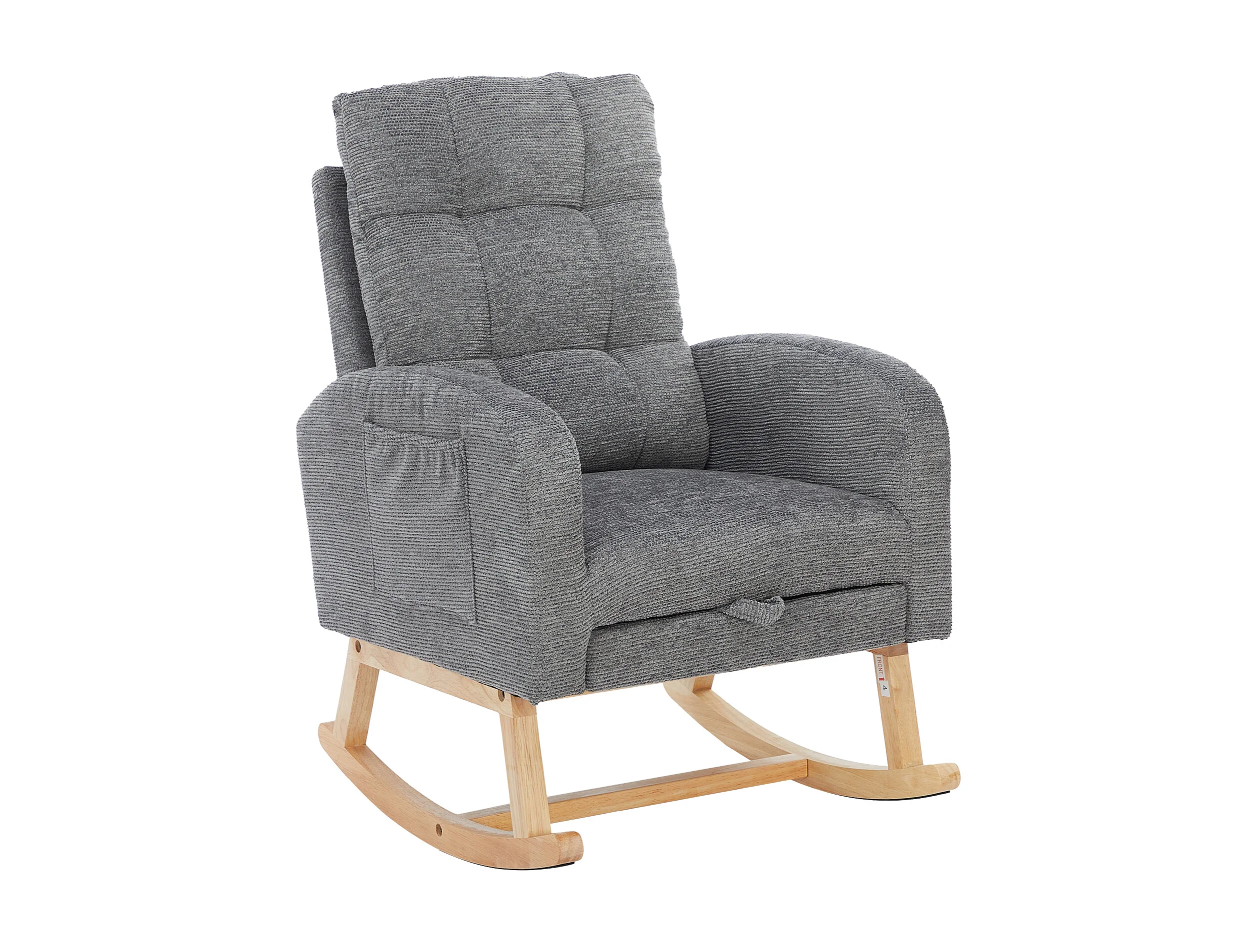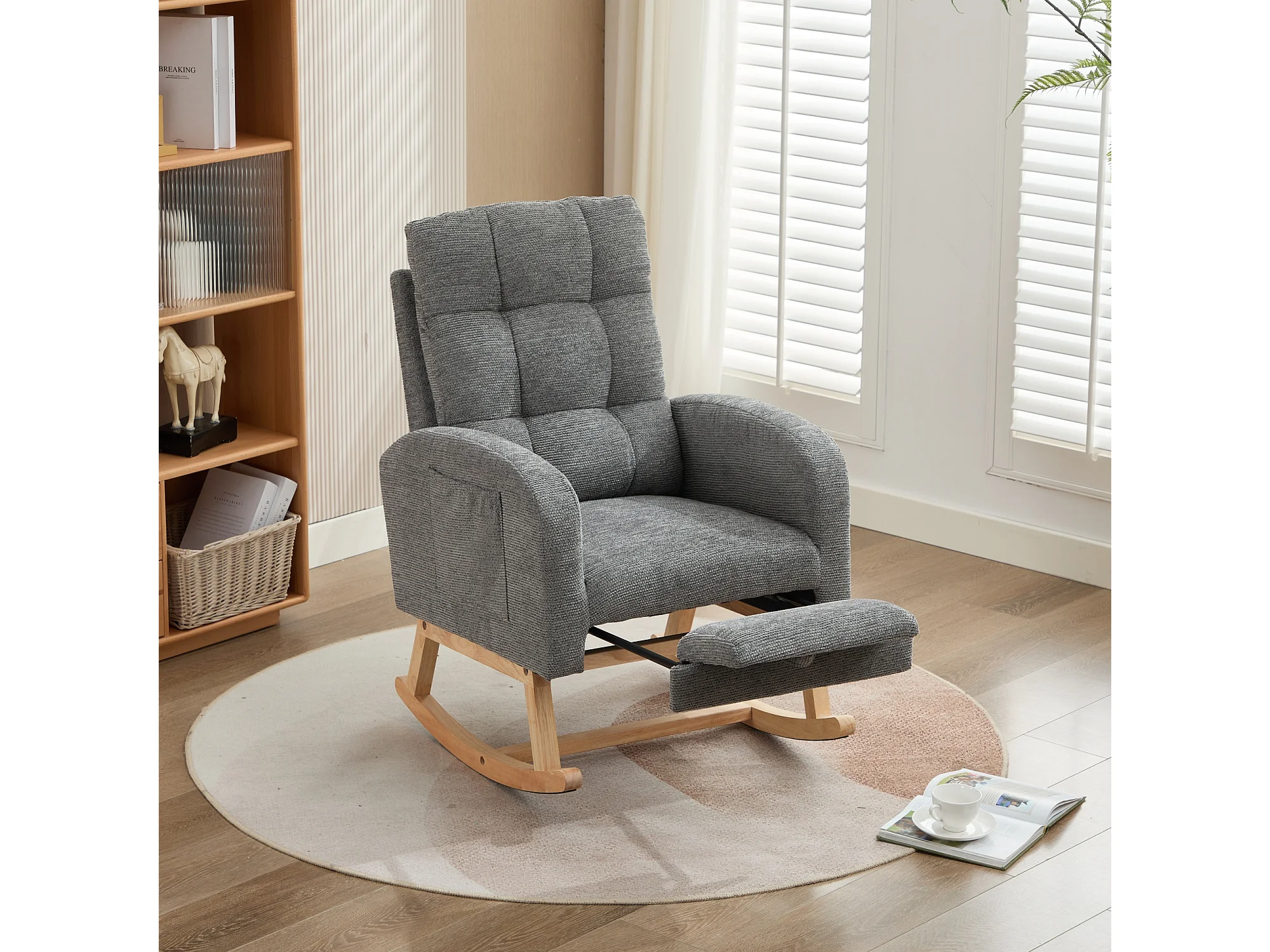 Teddy Velvet Schommelstoel met Voetenbank en Armleuningen - 132 x 50 x 99 cm - Massief Houten Frame - Grijs
