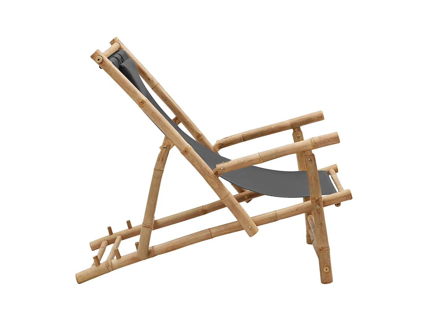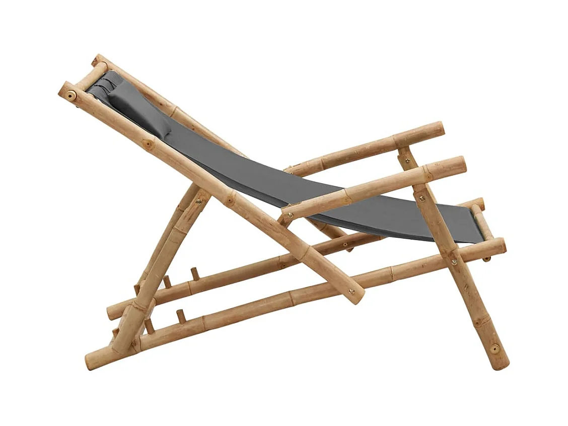 Terrasstoel van bamboe en donkergrijs canvas
