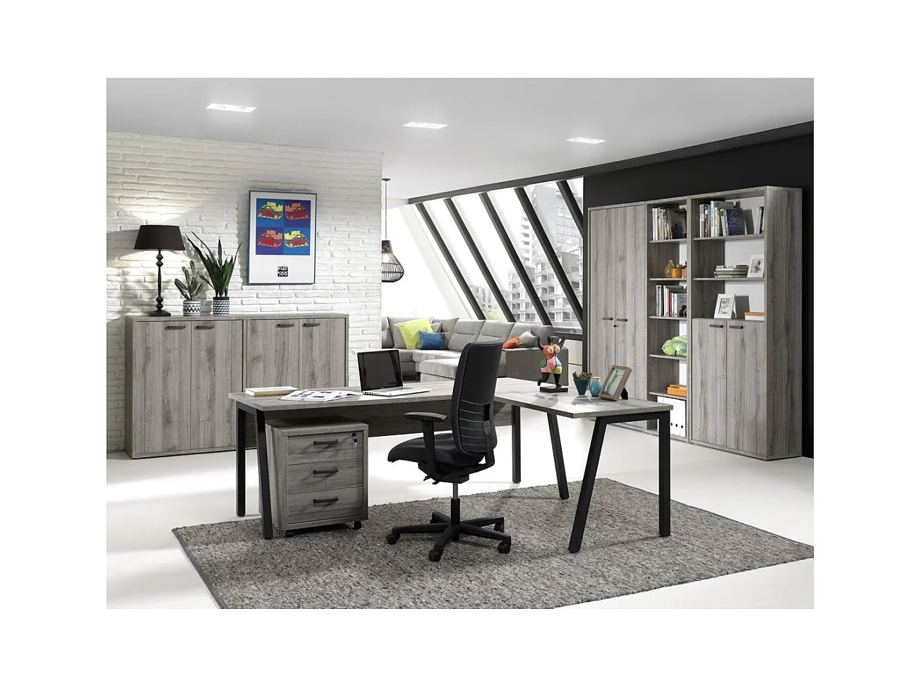 Bureaumeubel recht met opbergkoffer industriële stijl