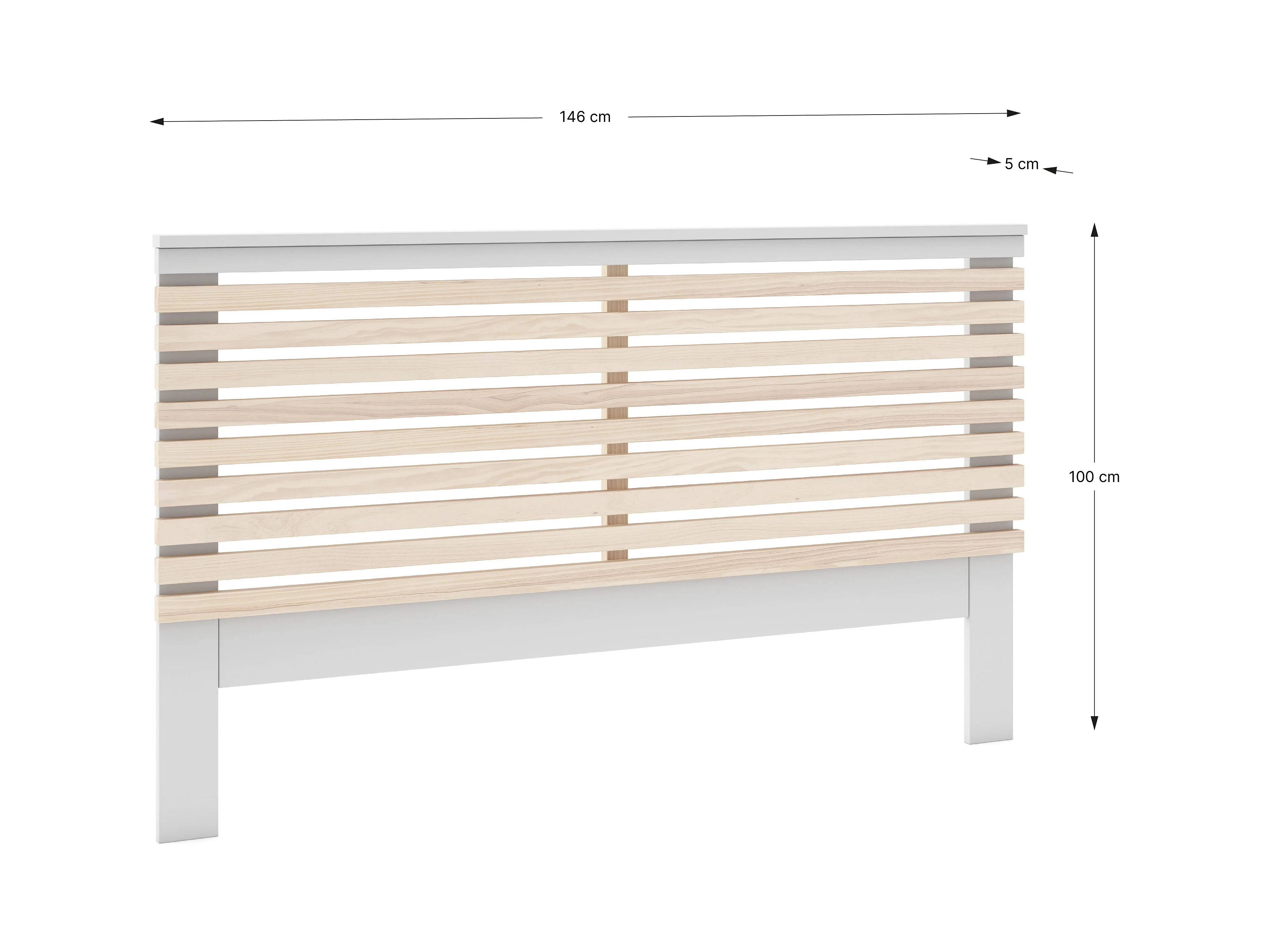 Hoofdeinde, Nachtkastjes, 196x107x3cm, Bed van 120,135,140cm, Lamellenwand, Wit