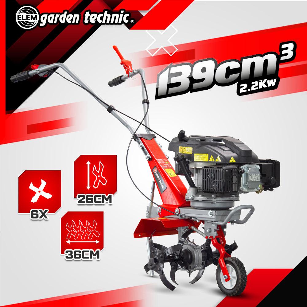 Bent u op zoek naar een thermische cultivator om de grond van uw moestuin of tuin te beluchten en te bewerken? Deze thermische cultivator van het merk Elem Garden Technic, uitgerust met een 4-takt motor van 139 CC, biedt u een werkbreedte en werkdiepte van respectievelijk 36 en 26 cm. Deze kenmerken maken het een ideaal hulpmiddel voor het bewerken van middelgrote of grote oppervlakken. De cultivator is uitgerust met een handvat en een wiel om het transport van de machine zo gemakkelijk mogelijk te maken.