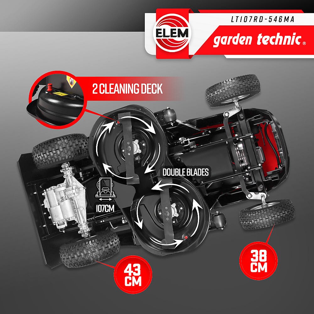 Onderhoud uw terrein met gemak met de thermische tractormaaier 546cc van Elem Garden Technic. Ontworpen voor grote oppervlakken tot 4000 m², combineert hij kracht, precisie en comfort voor een perfect resultaat.