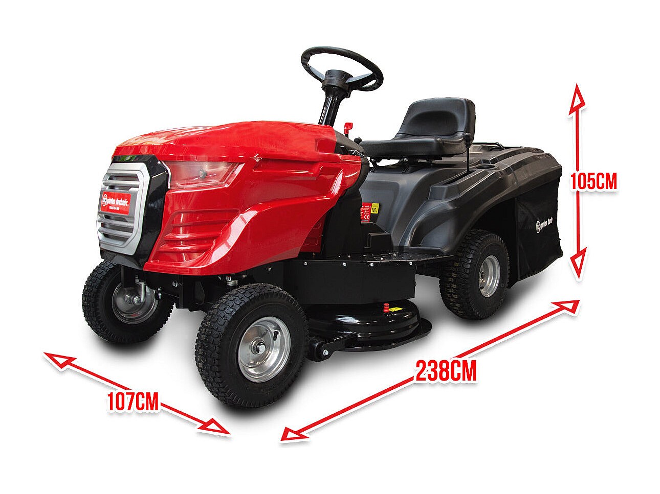 Uitgerust met een maaidek van 107 cm met 2 messen en een centrale hoogte-instelling (van 35 tot 75 mm), past deze tractormaaier zich aan alle soorten gazon aan. De grasopvangbak van 220L zorgt voor langdurig maaien zonder onderbreking, terwijl de geïntegreerde achterste uitworp verstoppingen voorkomt.