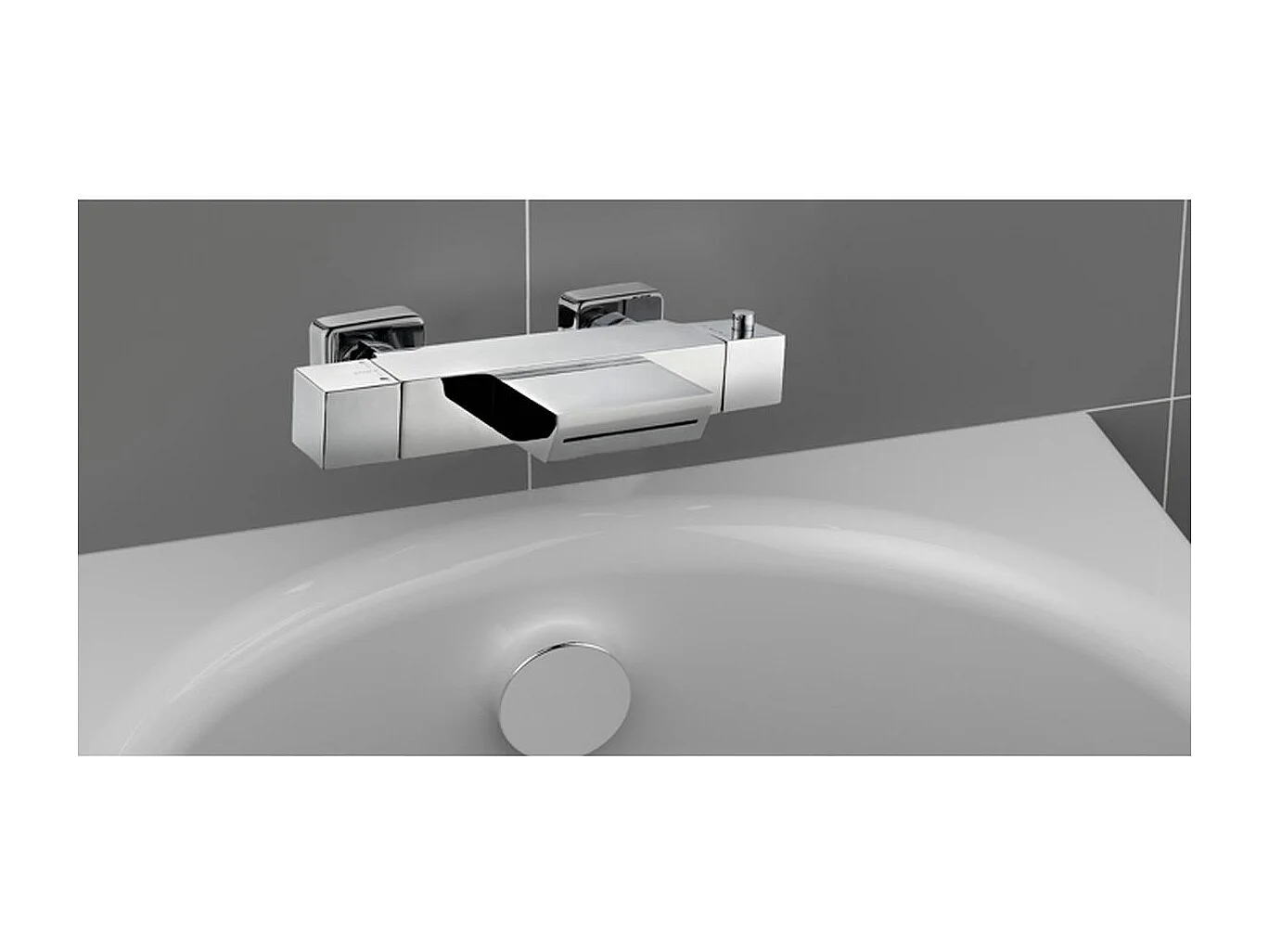 Thermostatische bad- en douchekraan Karen ROUSSEAU, verchroomd messing lichaam, keramische knoppen, metalen hendel, hartafstand 150 mm