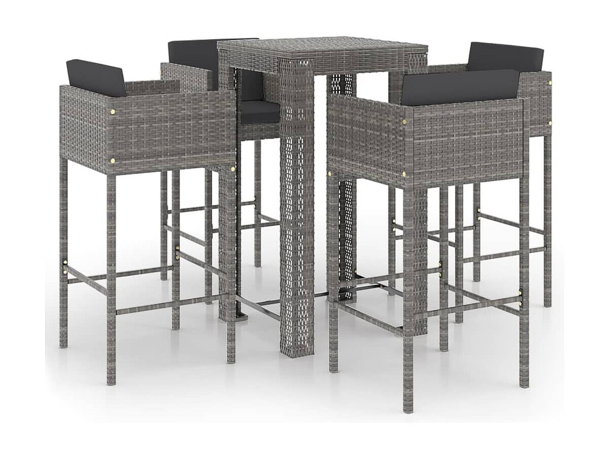 Xerid 5-delige Tuinbarset met kussens poly rattan grijs