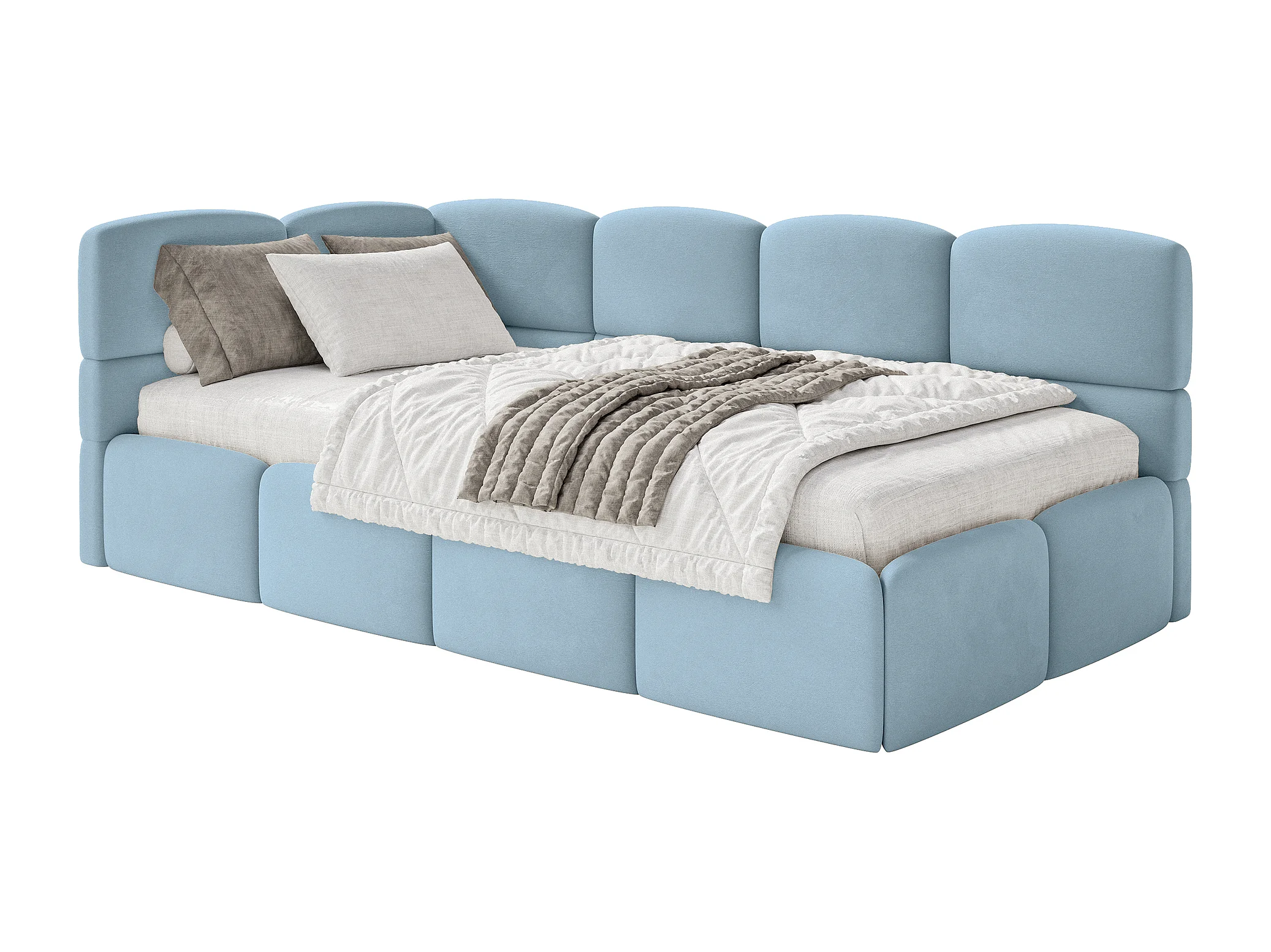 Tienerbed 120x200 – fluweel – Lichtblauw – links – CLOUDY