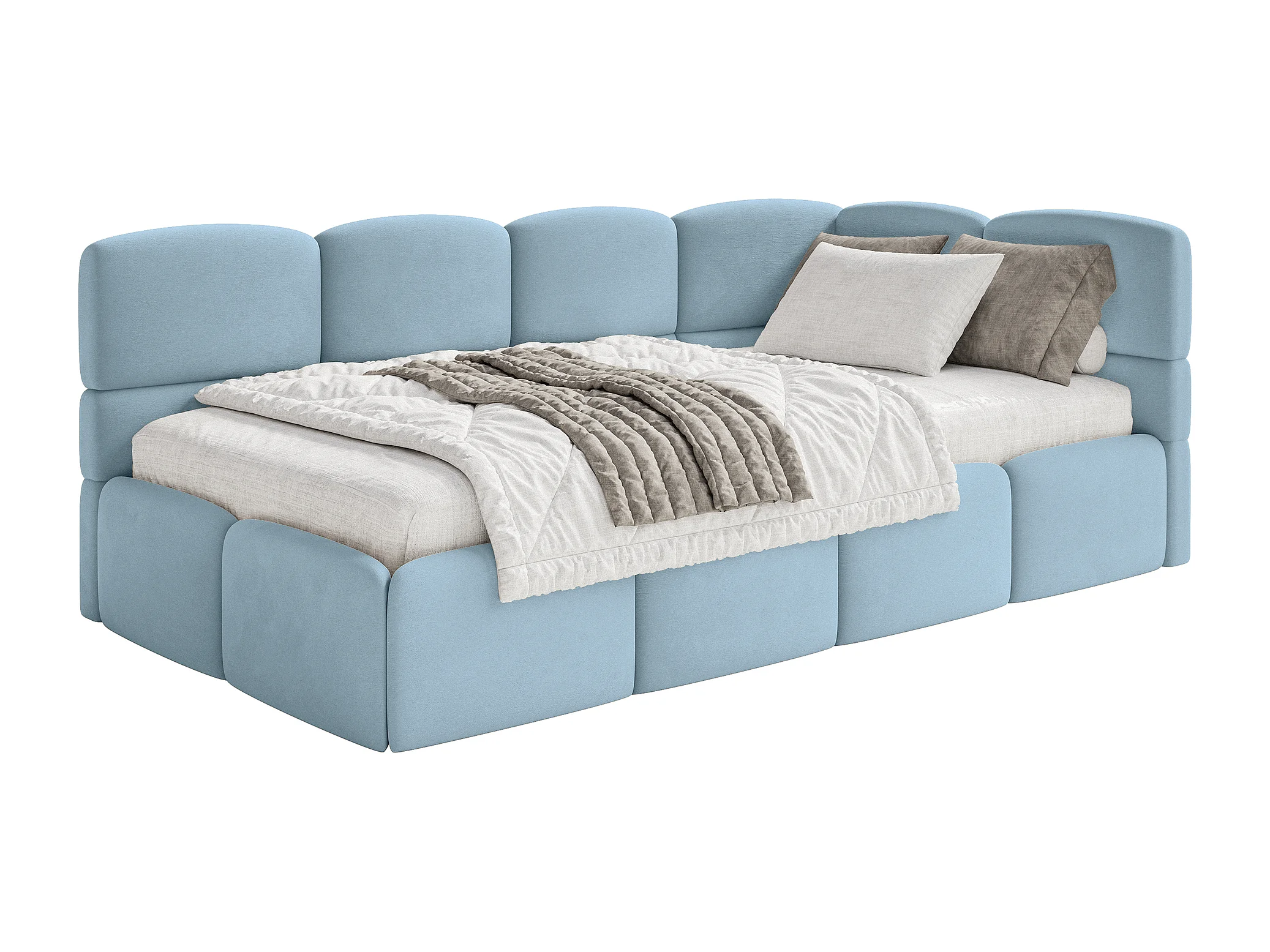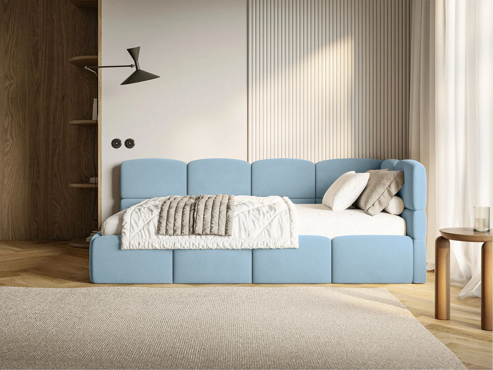 Tienerbed 120x200 – fluweel – Lichtblauw – rechts – CLOUDY