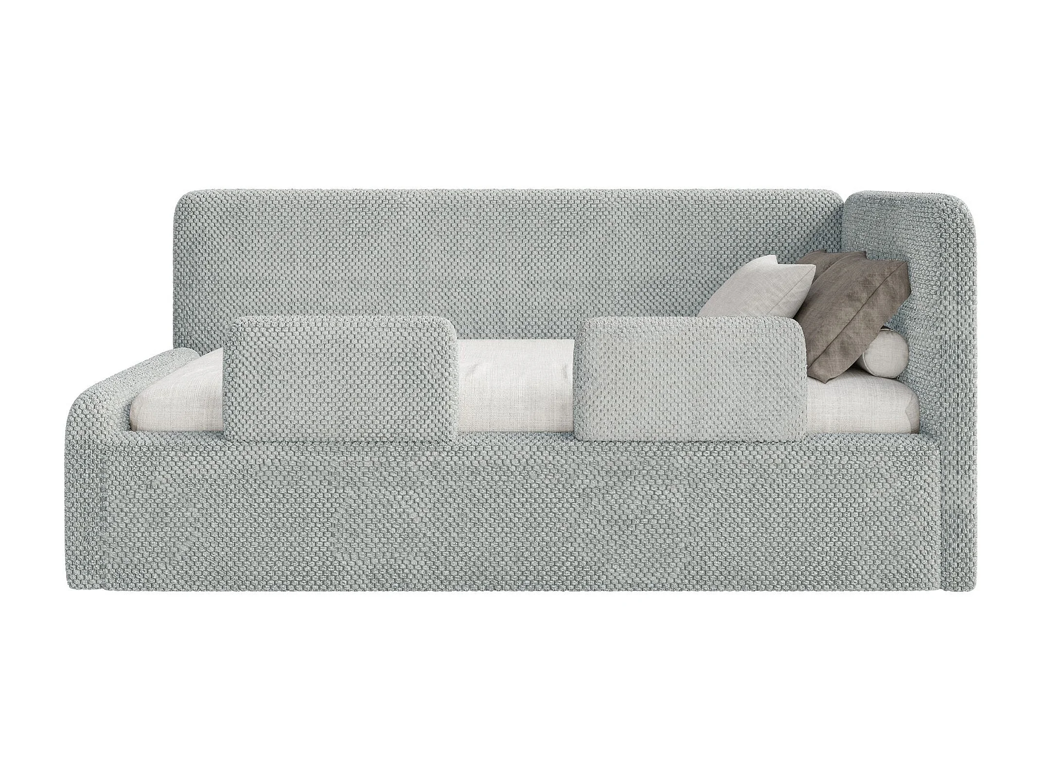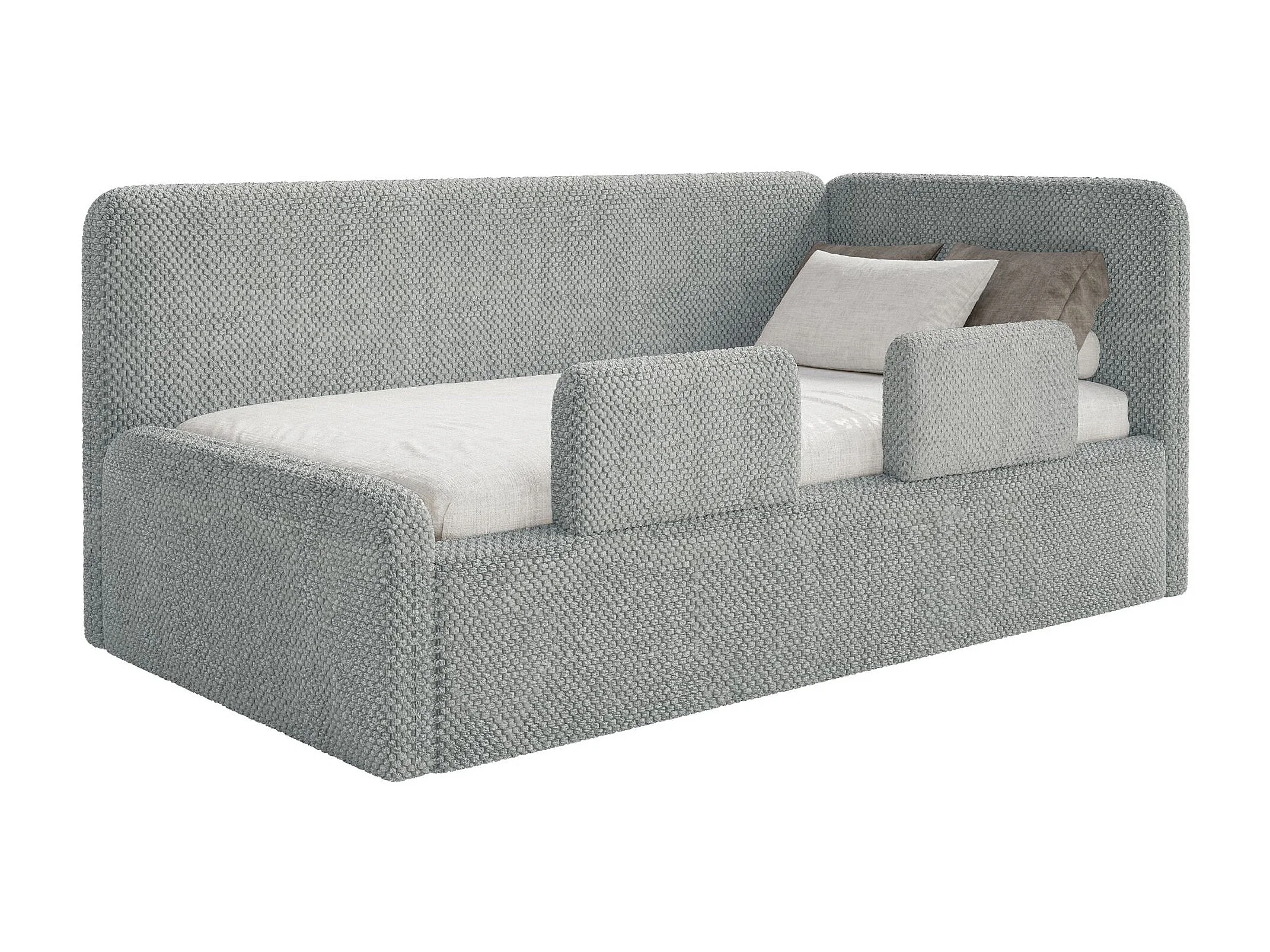 Tienerbed 90x200 met hoofdbord rechts – velours – grijs – FANKO