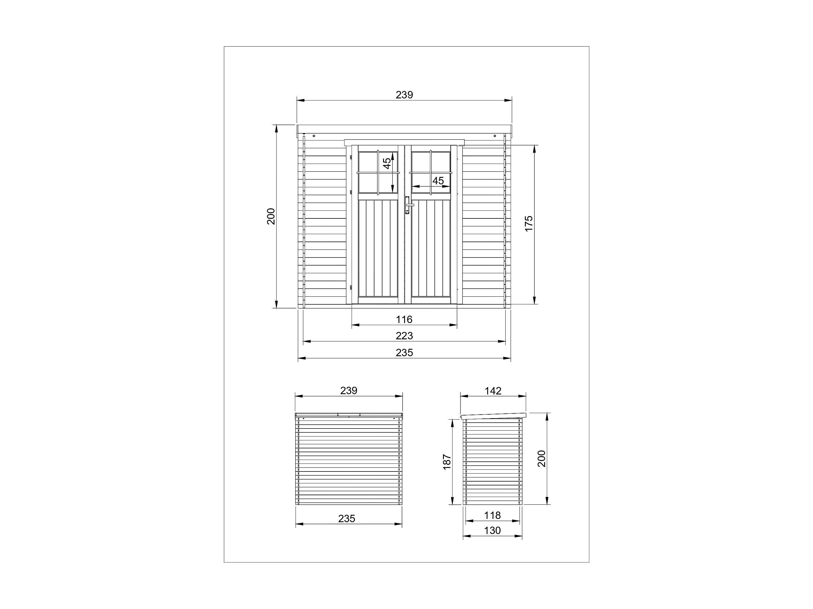 Houten tuinschuurtje met hoogwaardige afsluitbare deur - 2.63 m² / 239x142xH200 cm - M310F