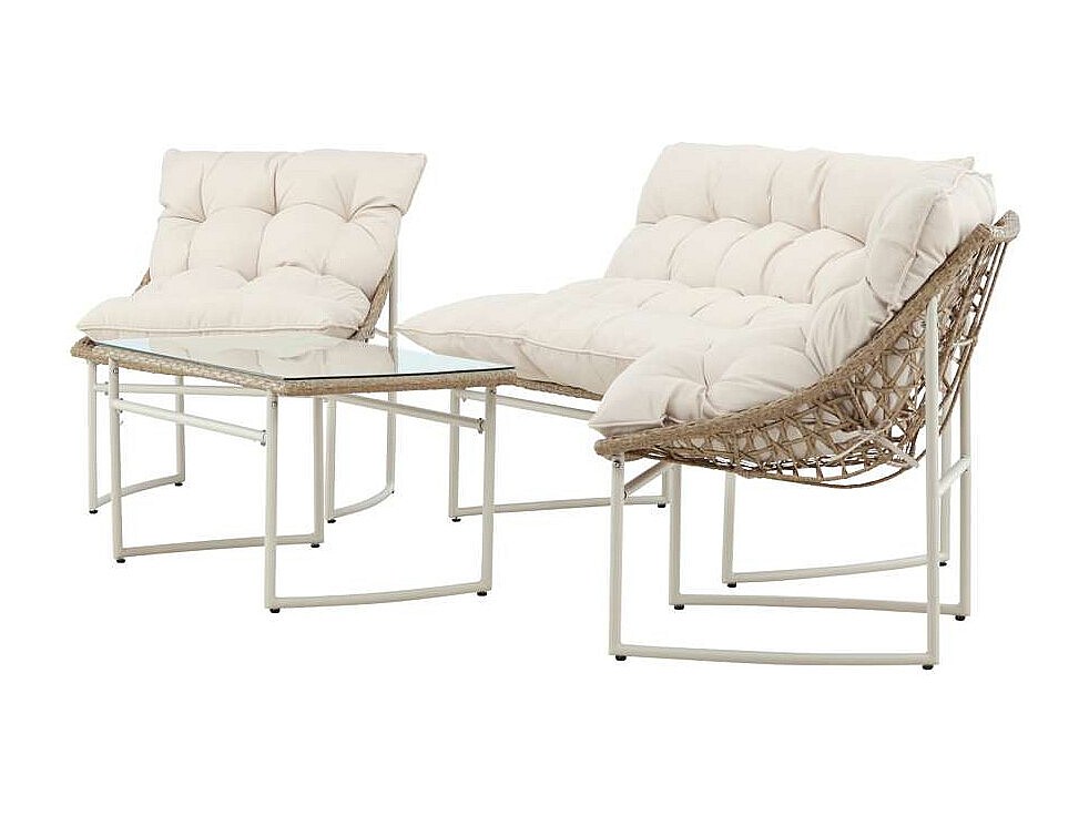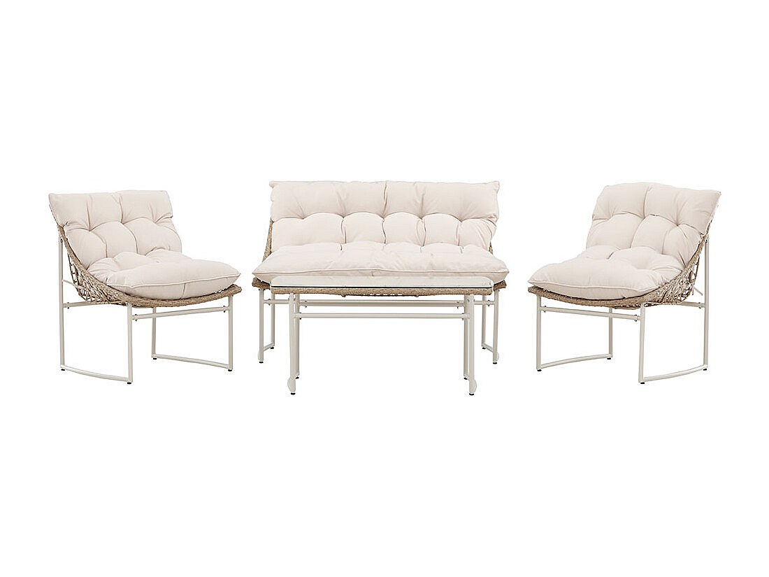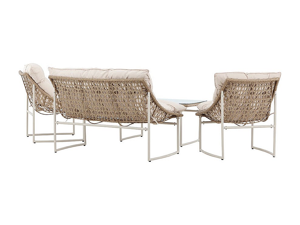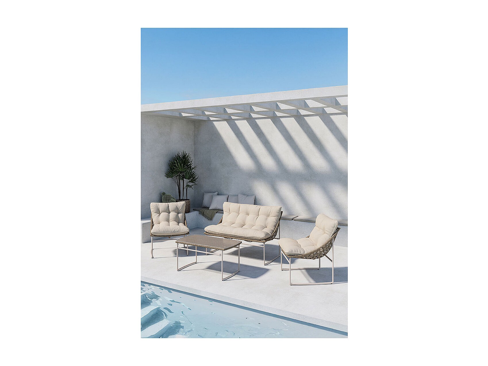 Mazzaro lounge set 1 bank, 2 stoelen, 1 salontafel beige.