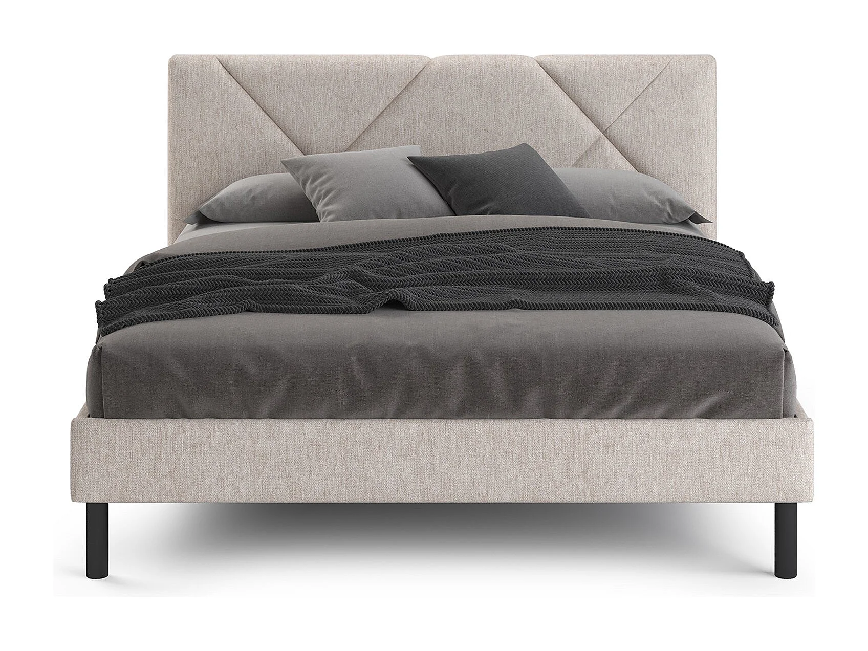 Tirino tweepersoonsbed, Gestoffeerd stoffen bed met hoofdbord, Houten lattenbodem, geschikt voor matras 160x200, Beige