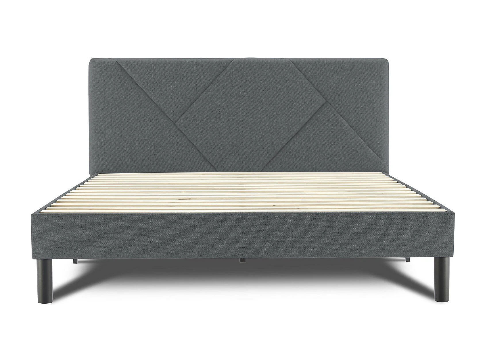 Tirino tweepersoonsbed, Gestoffeerd stoffen bed met hoofdbord, Houten lattenbodem, geschikt voor matras 160x200, Grijs