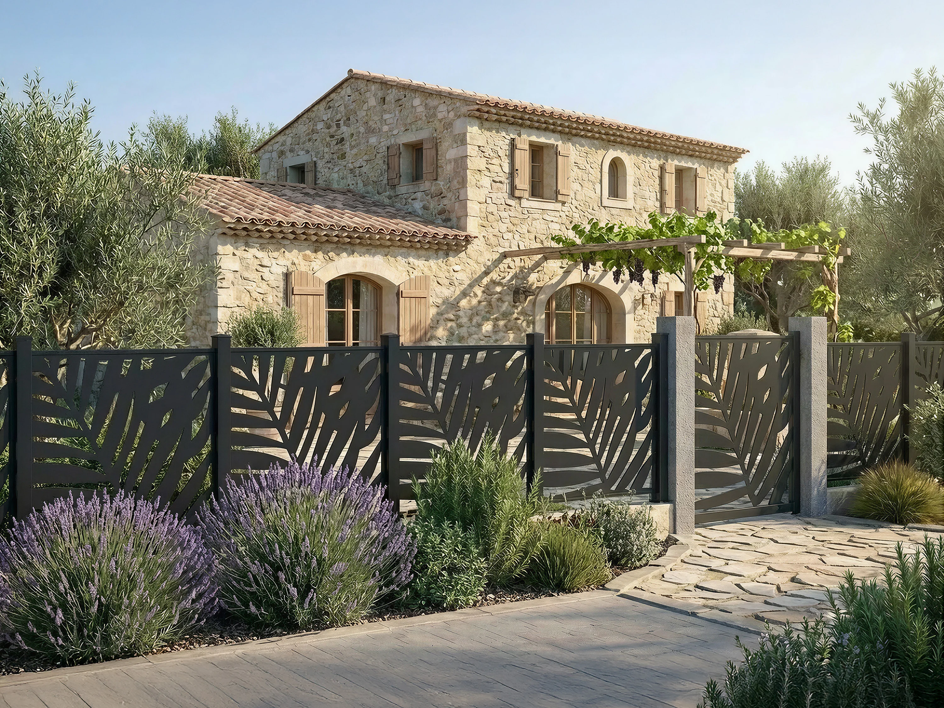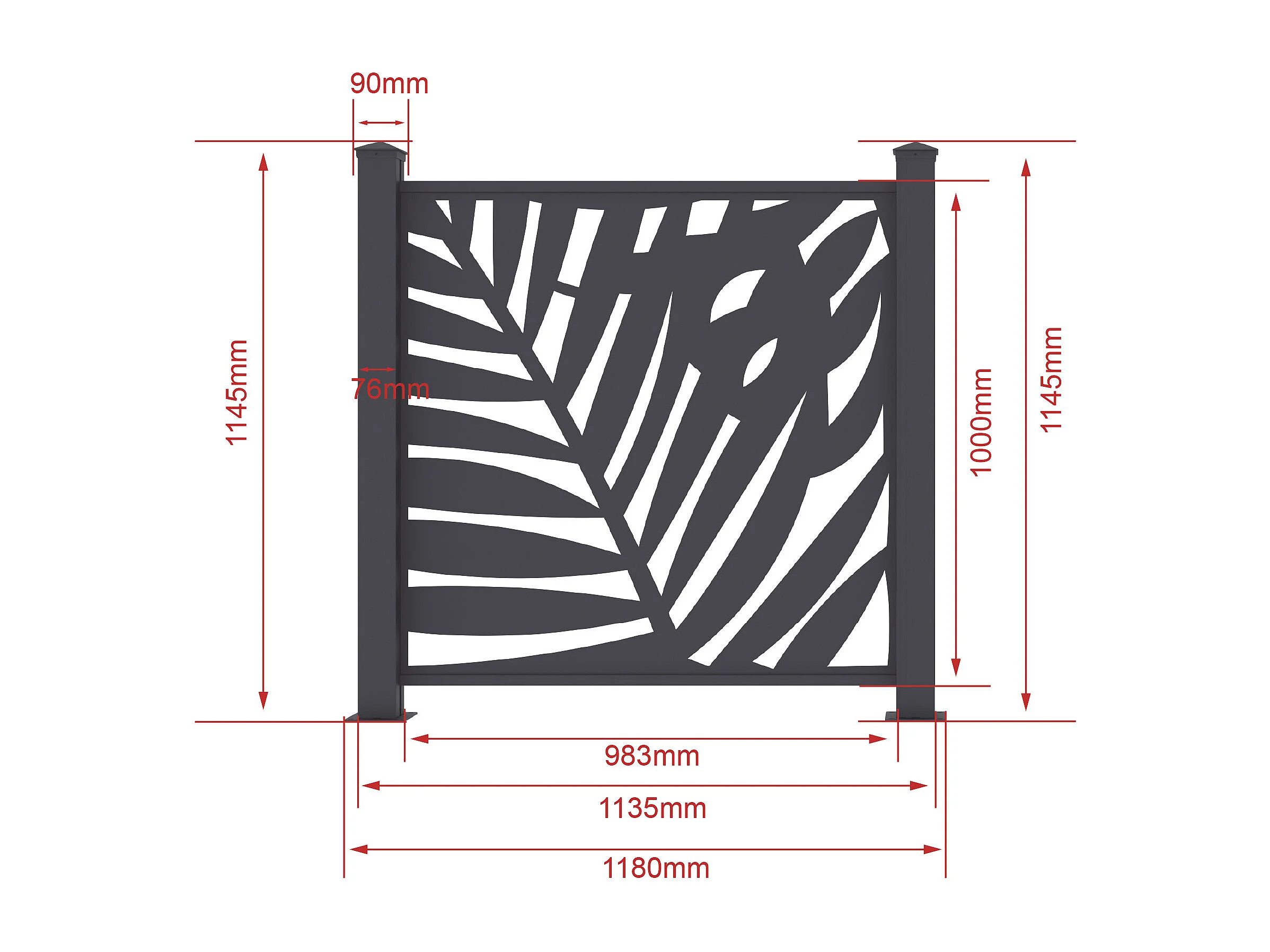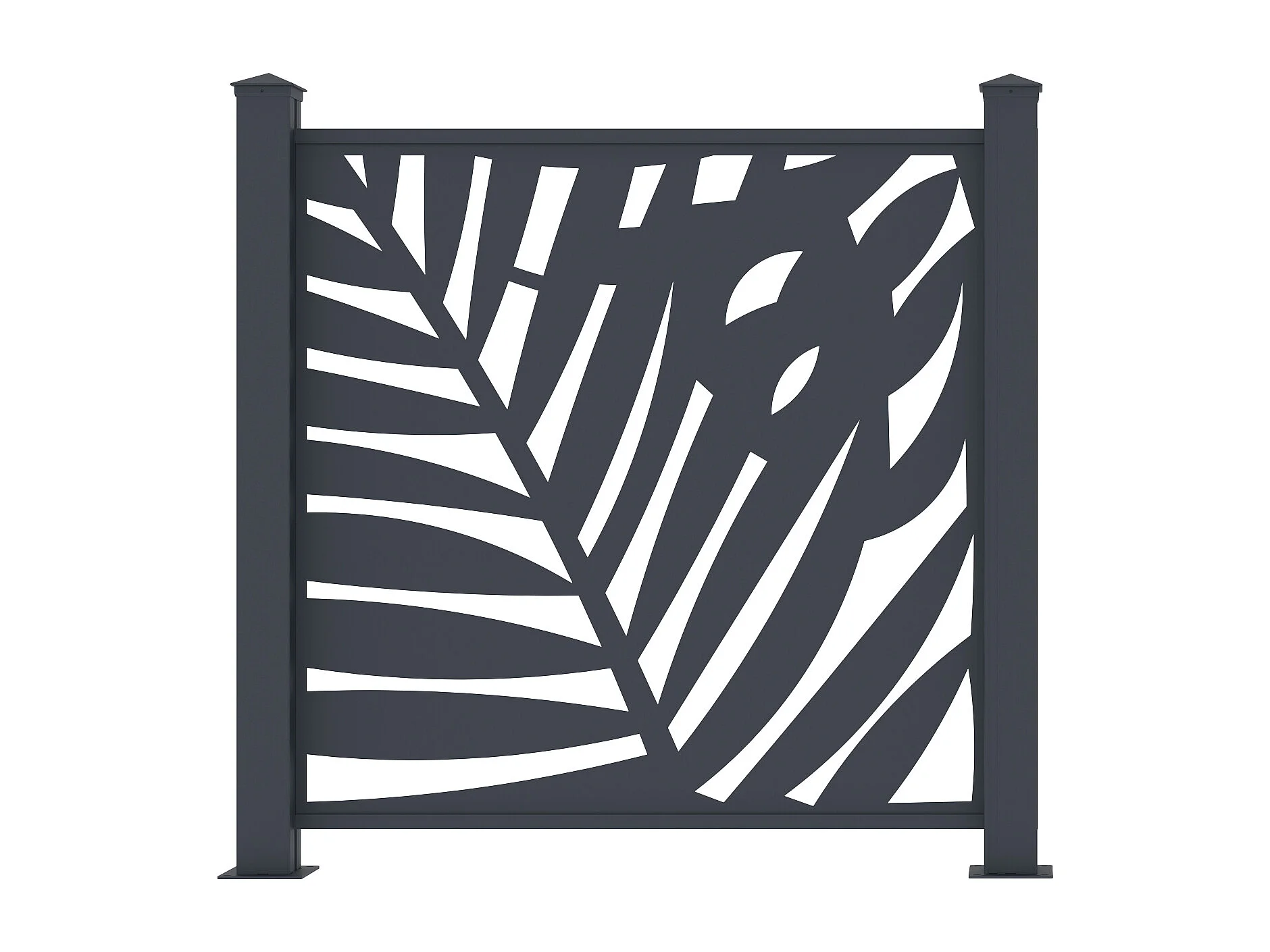 Aluminium schutting met uitgesneden tropisch motief - Starterset - H114 x B118 cm - Antraciet - TOGIRO