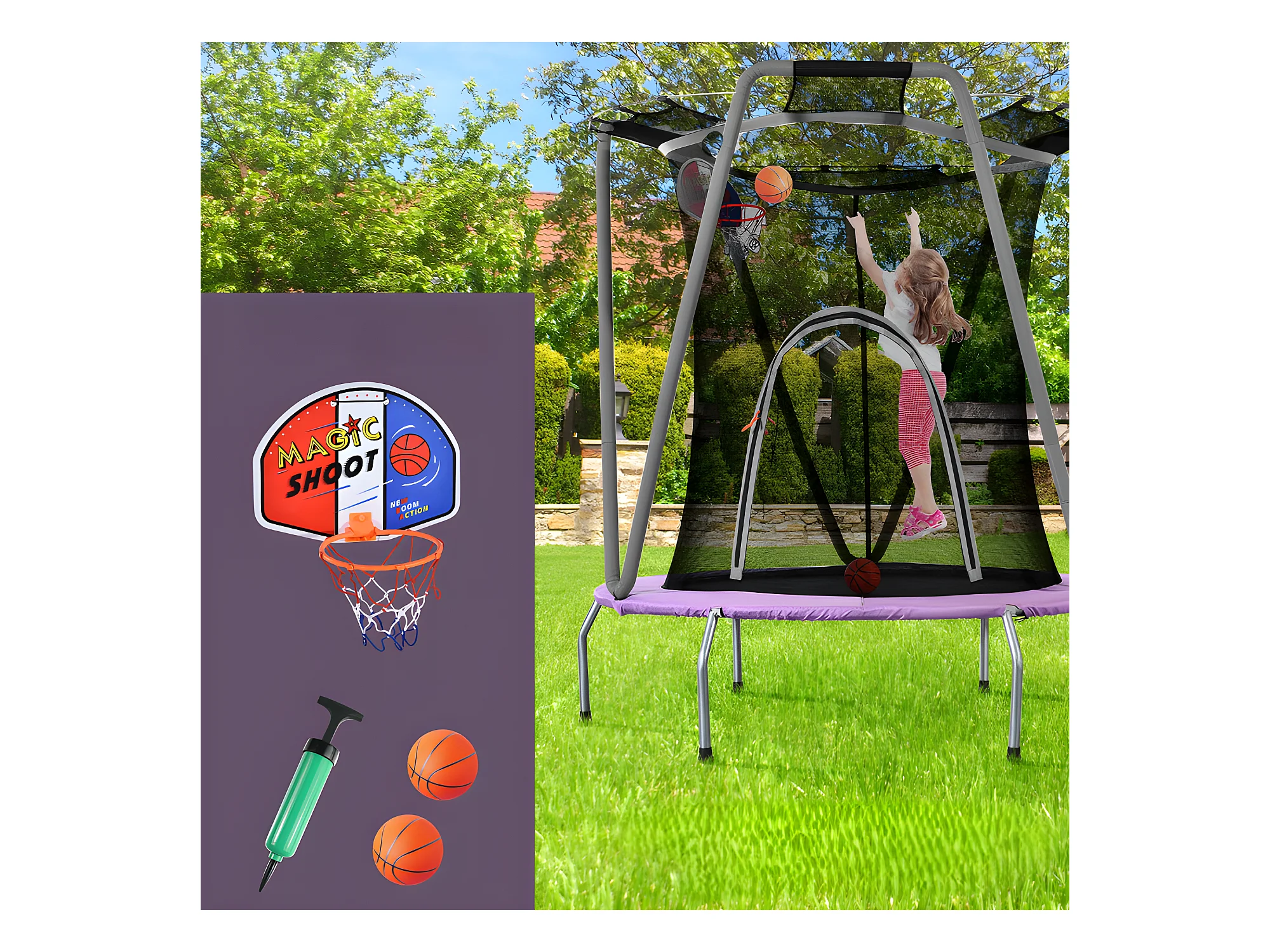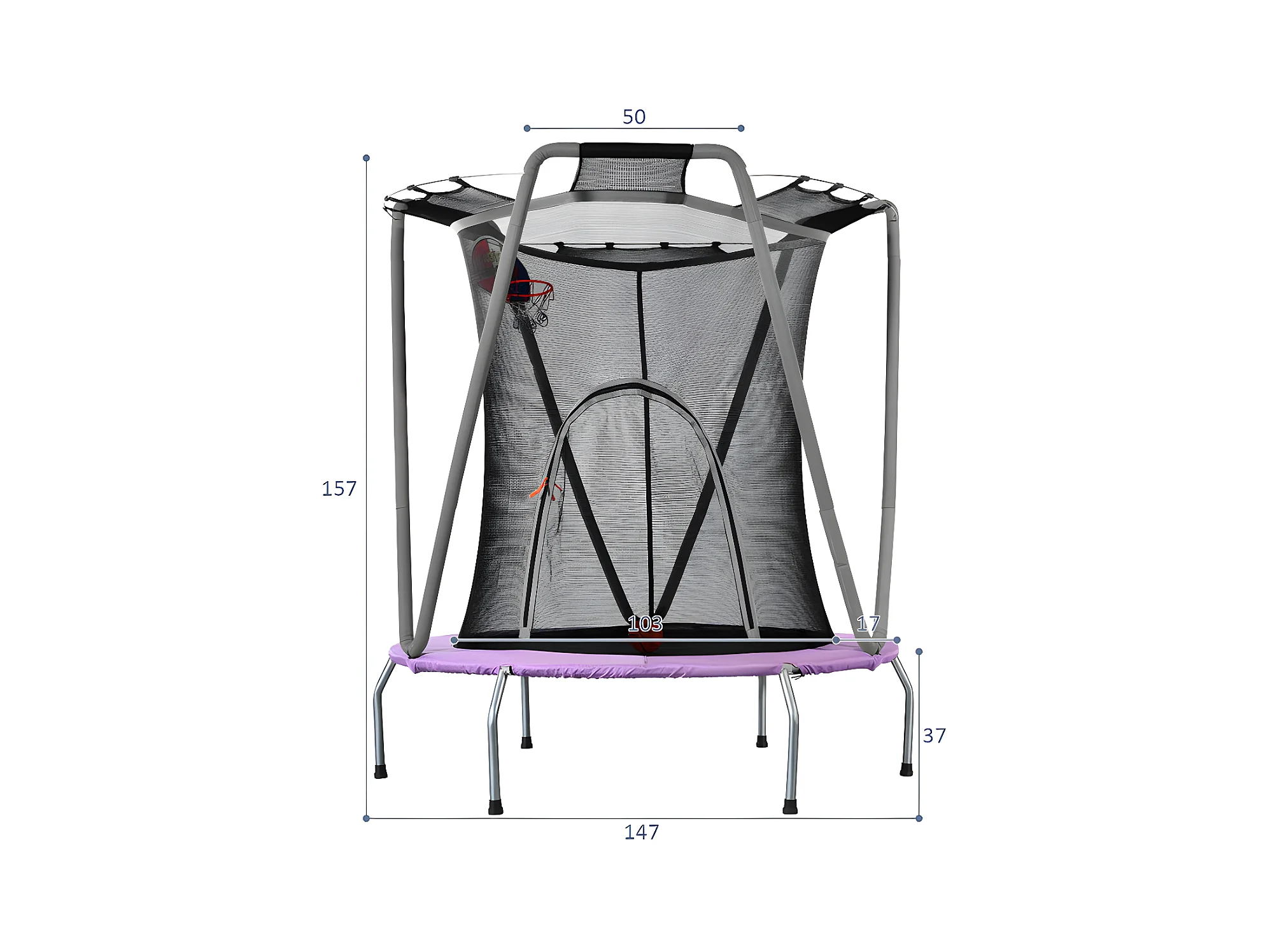 Trampoline met basketbalring - binnen en buiten - gegalvaniseerd stalen frame - Paars
