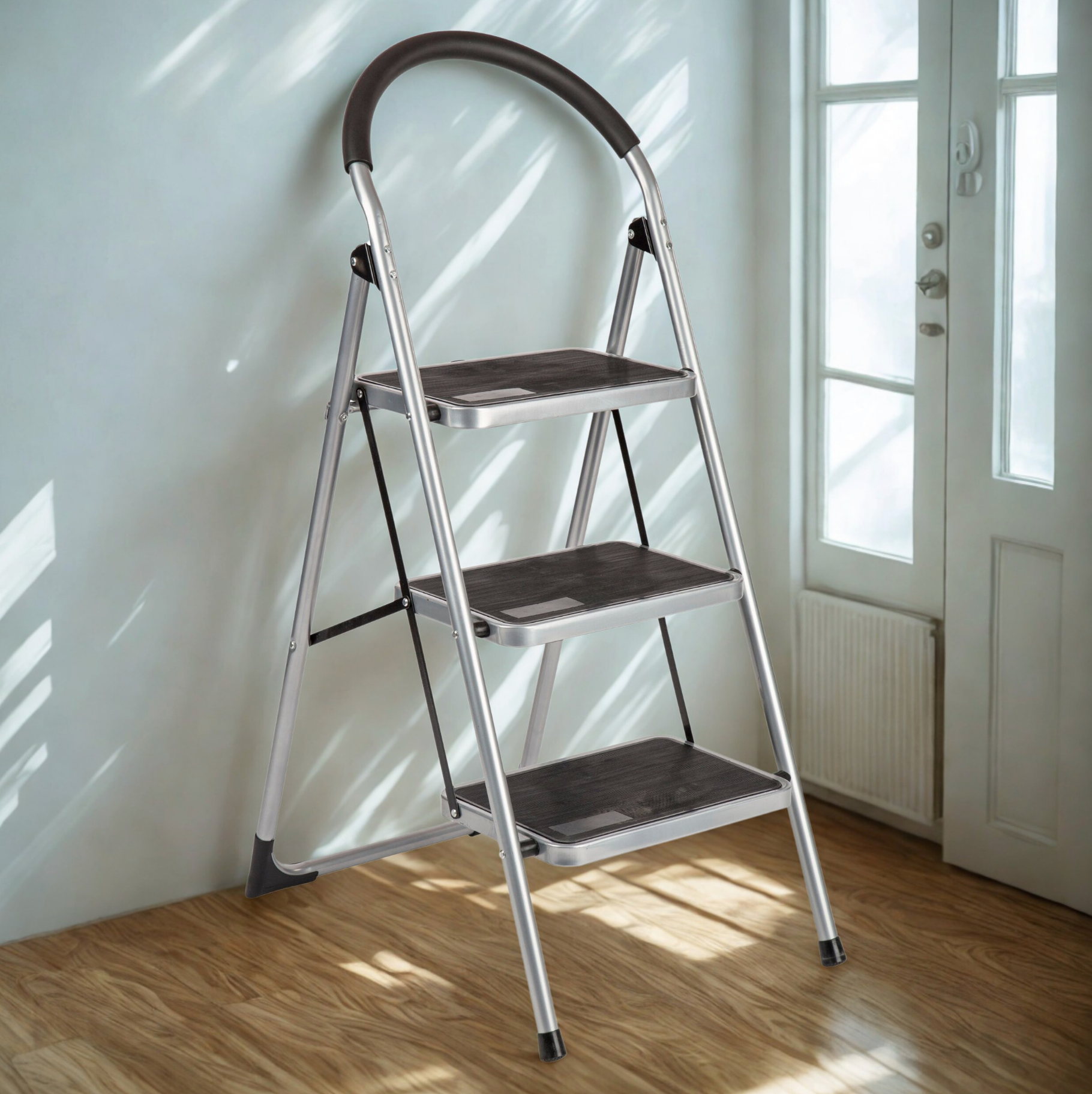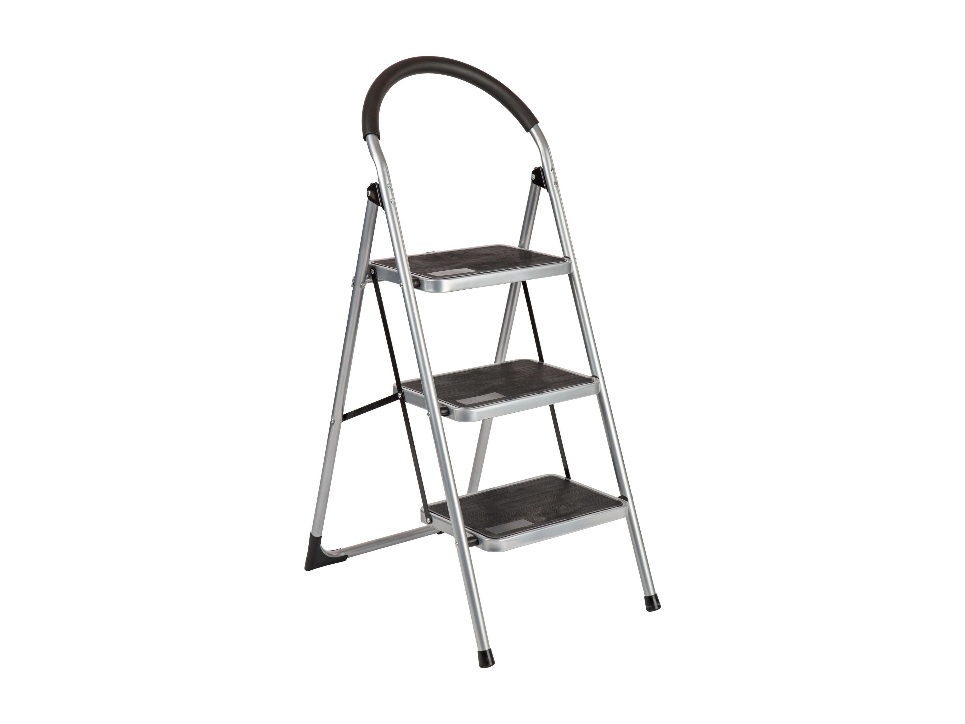 Trapladder 3 treden in gelakt staal 1,13 m met comfortabele steun en extra brede treden