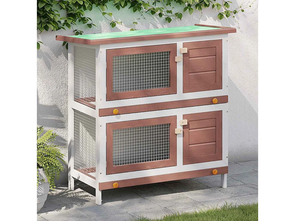 Trinity Konijnenhok voor buiten met 4 deuren hout bruin