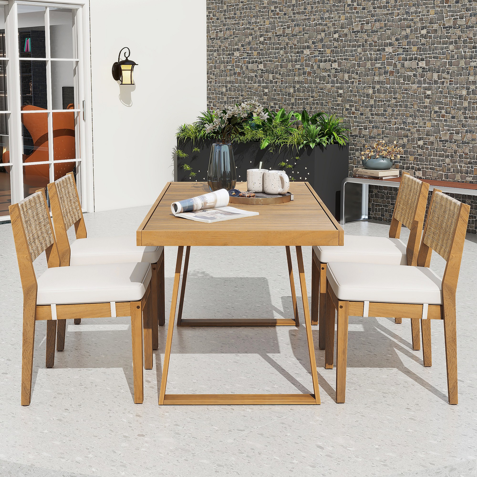 Tuin eetset voor 4 personen - 4 fauteuils - 1 tafel - structuur van gegalvaniseerd ijzer - in verwisselbaar en wasbaar textiel - Wit + Natuurlijk