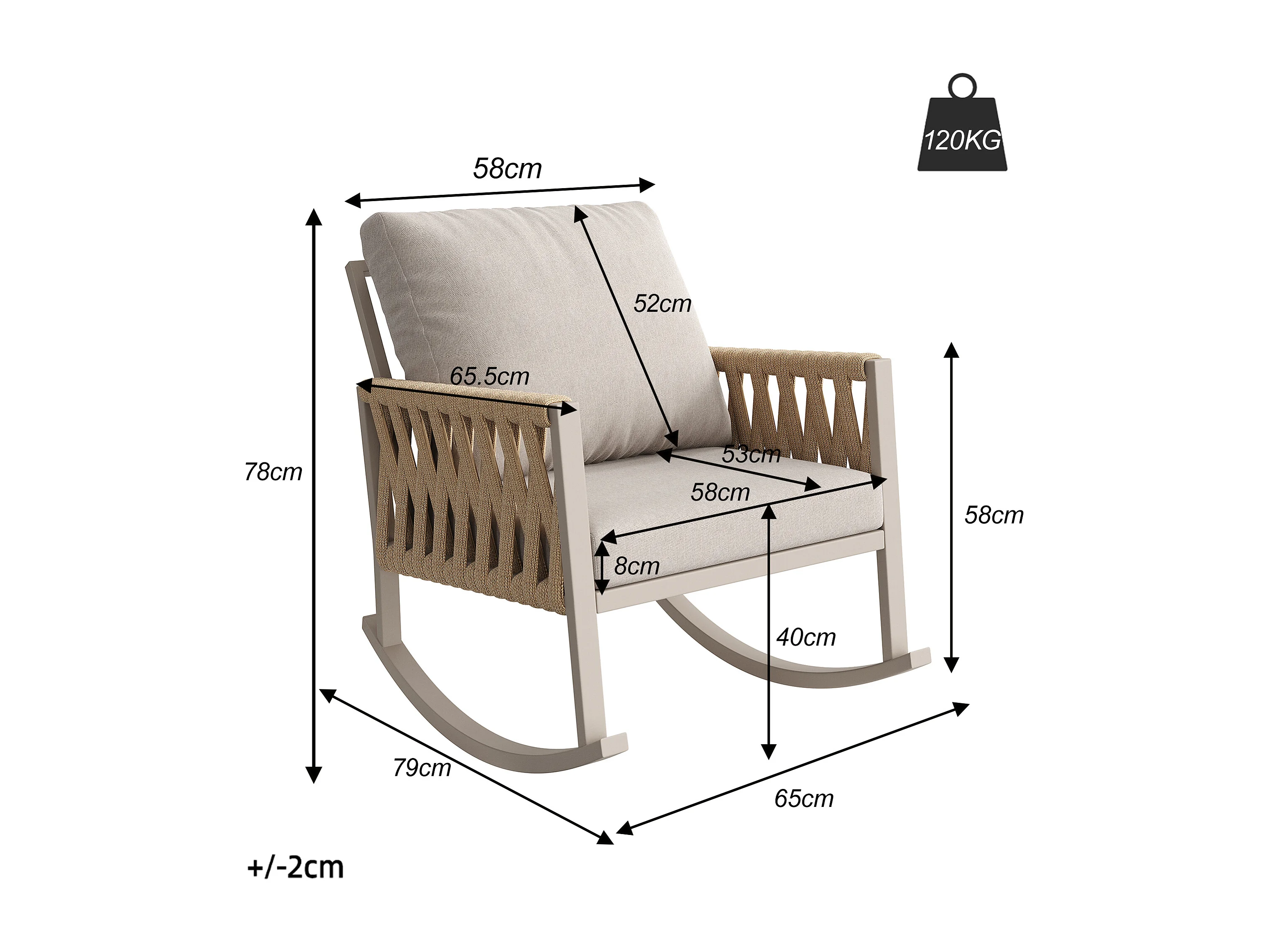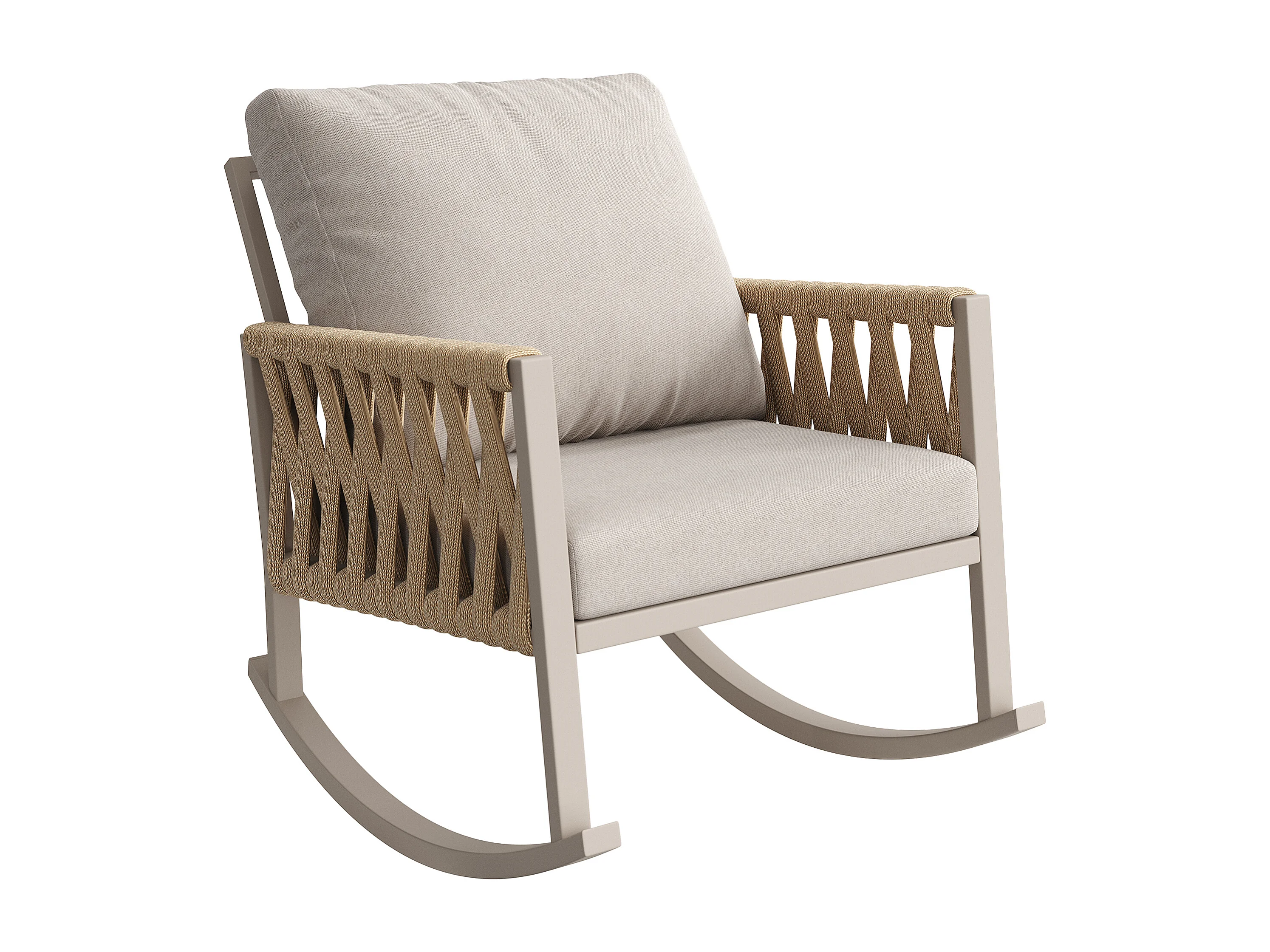 Tuin Schommelstoel met Kruisgevlochten Koord Rughouding - Moderne Design Buitenschommelstoel - Metalen Frame - Beige