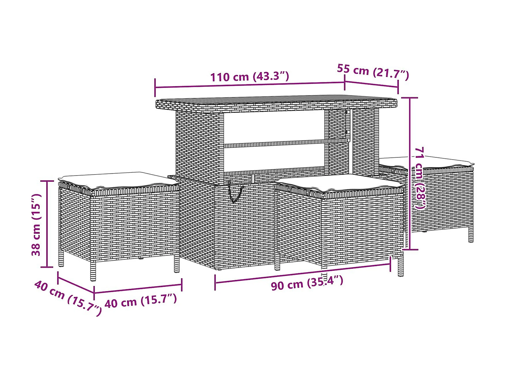Tuin Sofa Set met kussen met opslag Zwart Poly riet