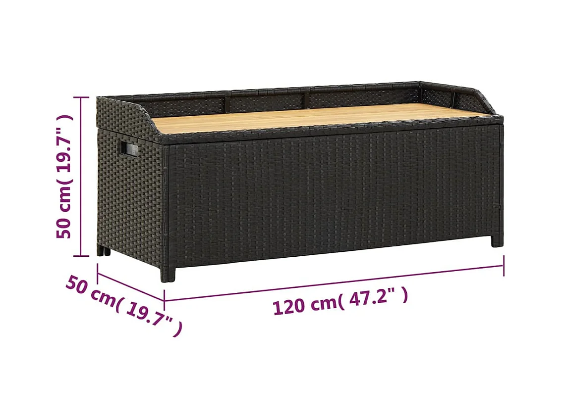 Tuinbank 115 cm Hars riet en acaciahout Zwart