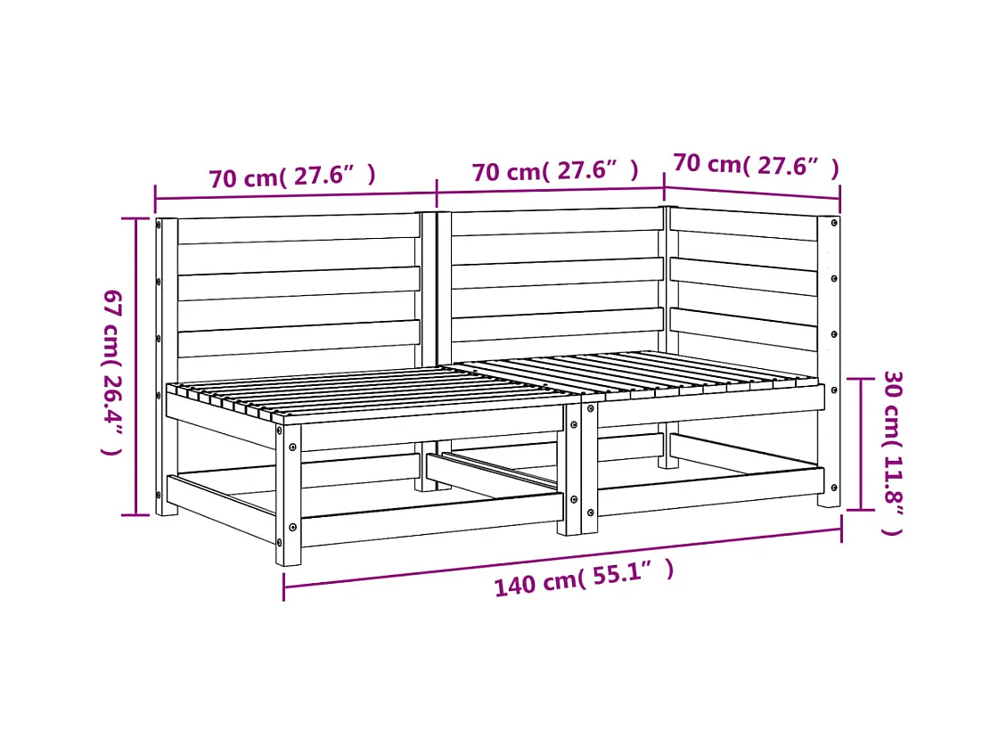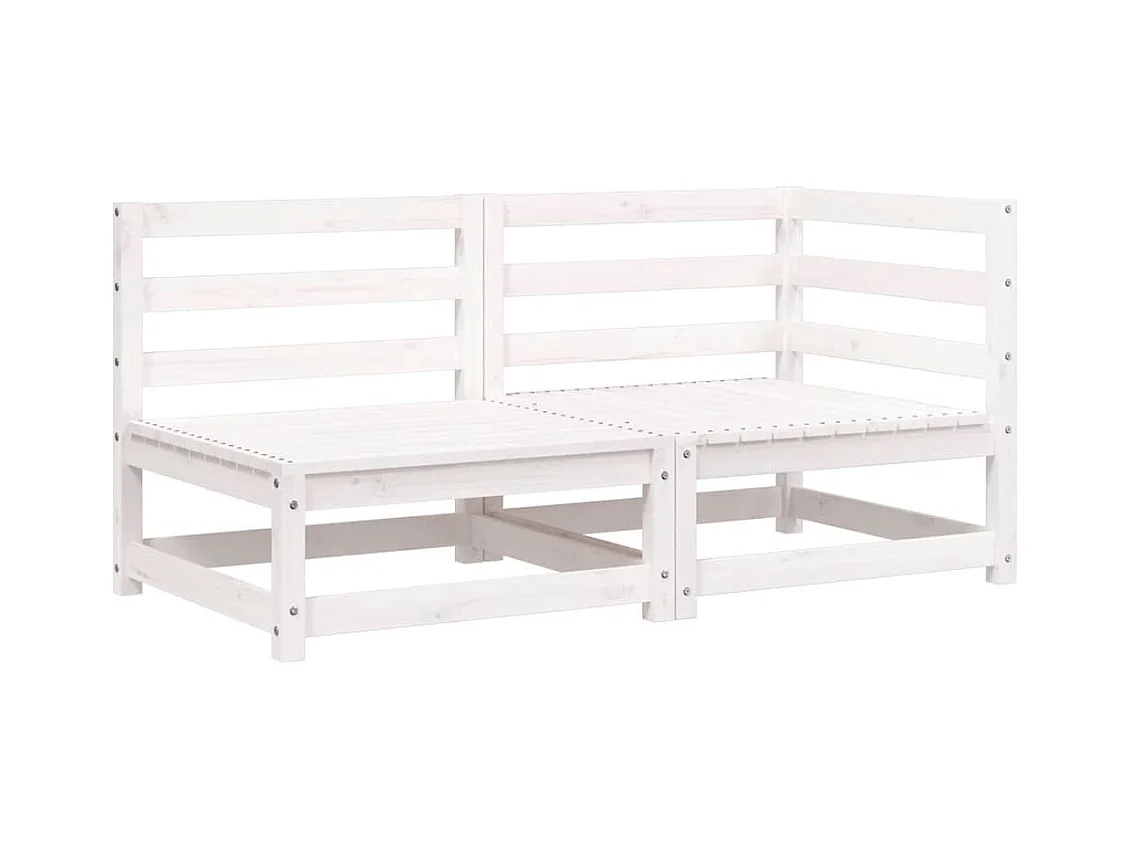 Tuinbanken 2 st zonder armleuningen met kussens grenenhout wit