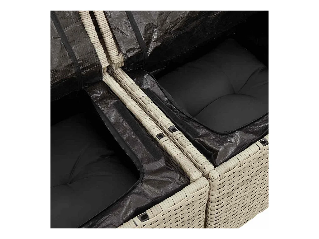 Tuinbank 2-zits tafel en voetenbanken poly rattan lichtgrijs