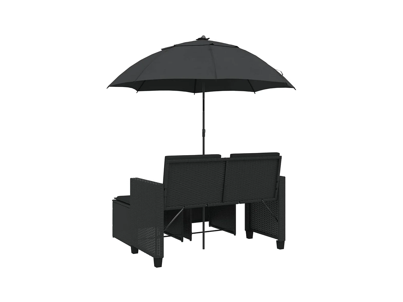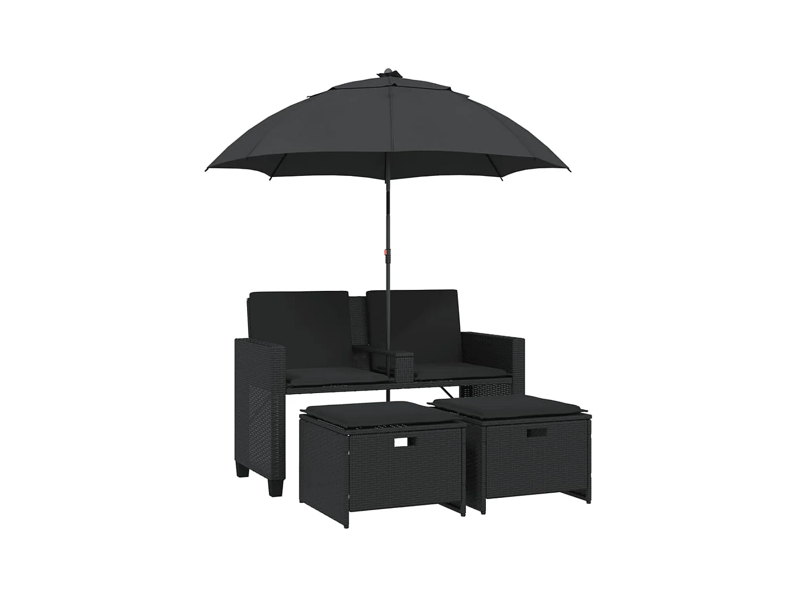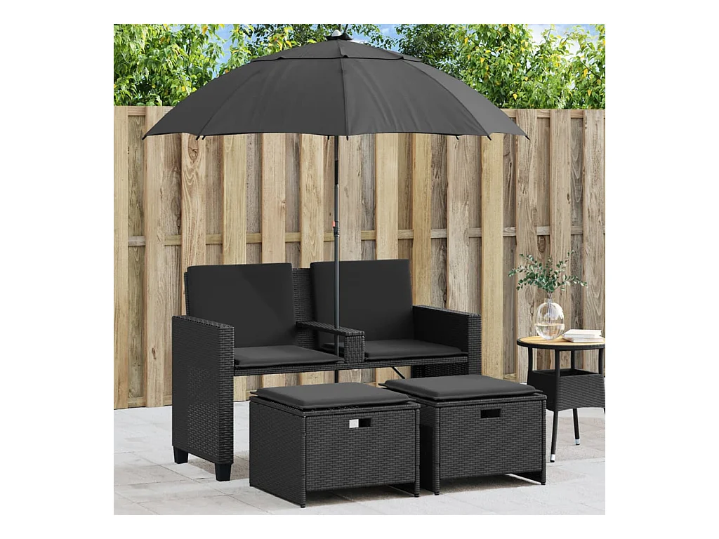 Tuinbank 2-zits met parasol en voetenbanken poly rattan zwart