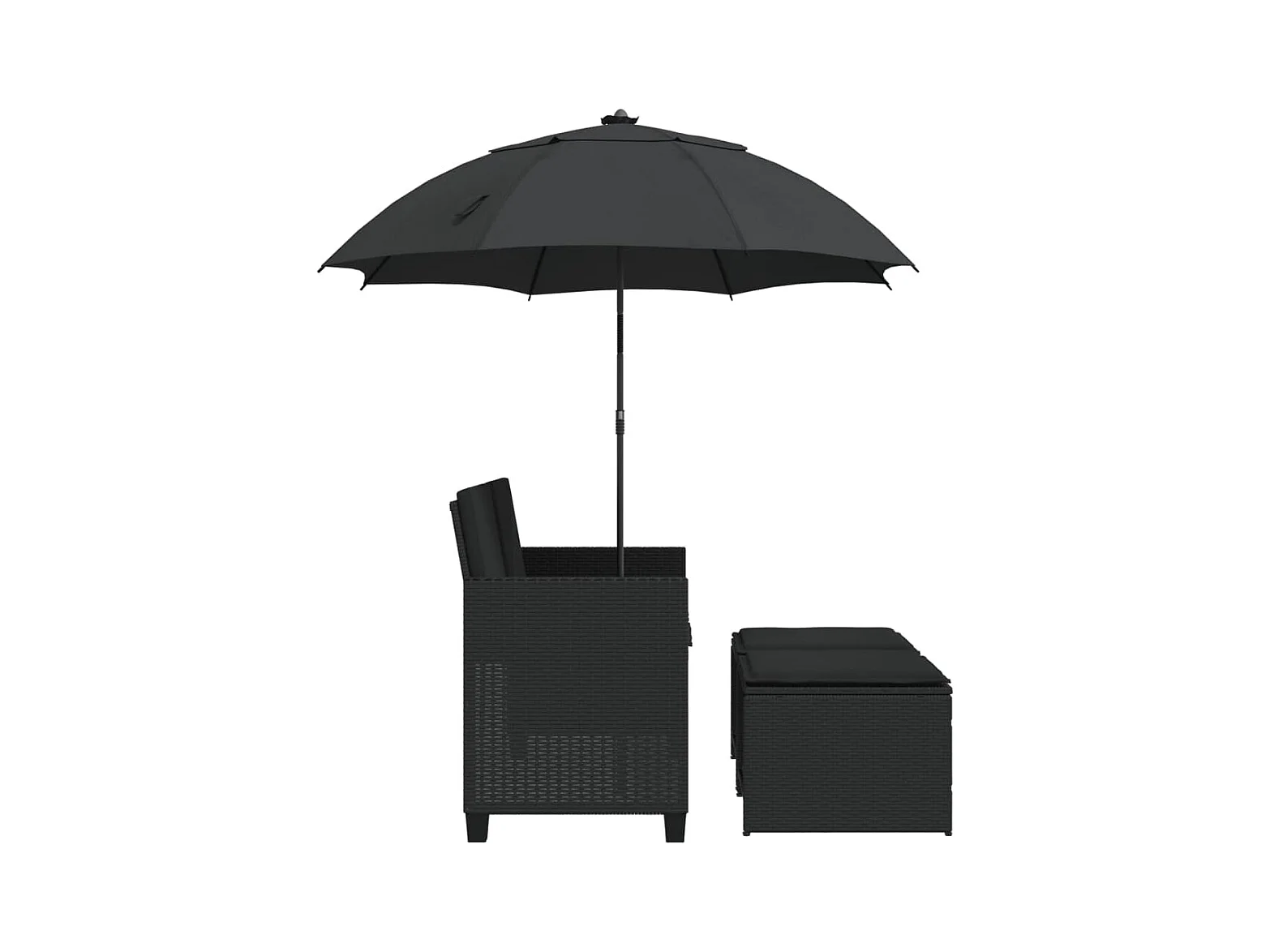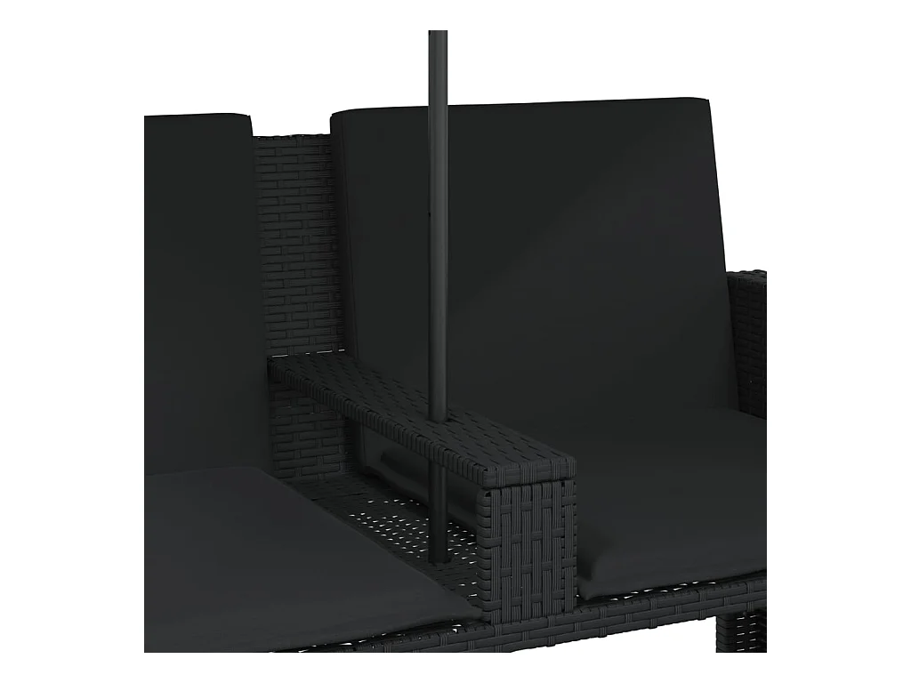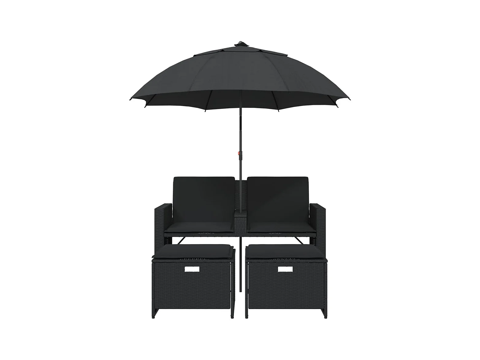 Tuinbank 2-zits met parasol en voetenbanken poly rattan zwart