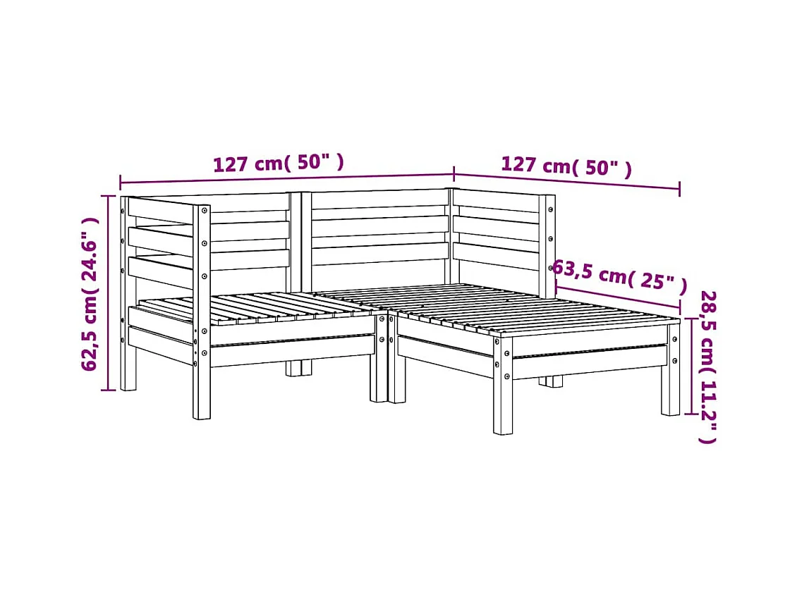 Tuinbank 2-zits met voetenbank massief grenenhout
