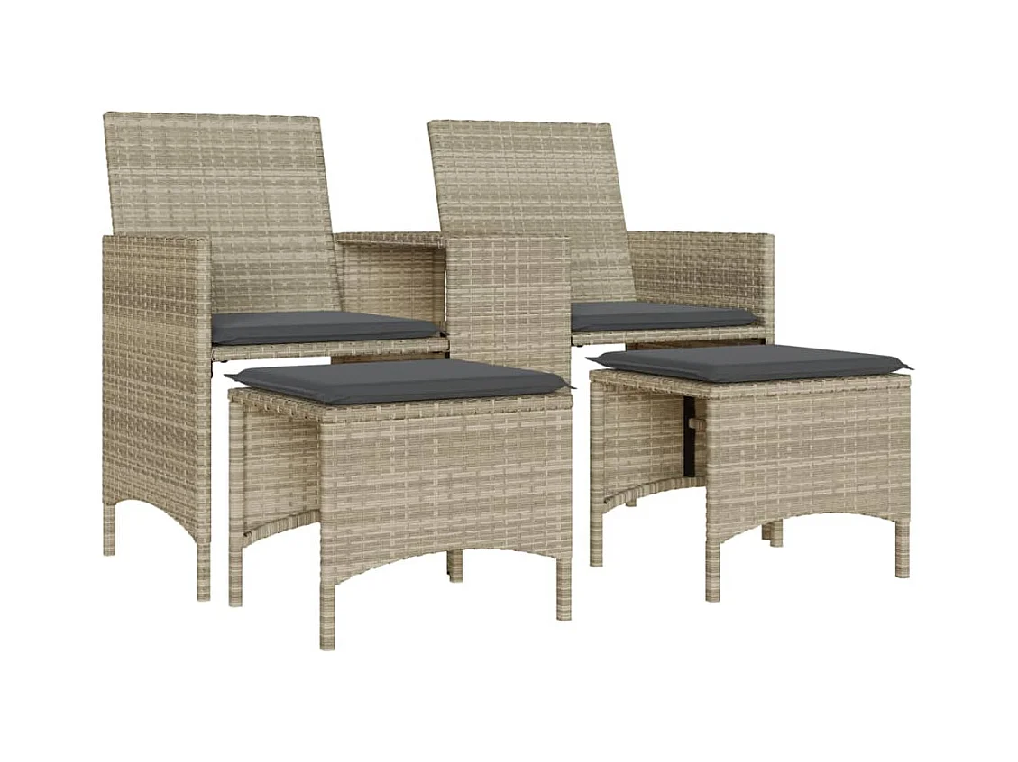 Tuinbank 2-zits tafel en voetenbanken poly rattan lichtgrijs