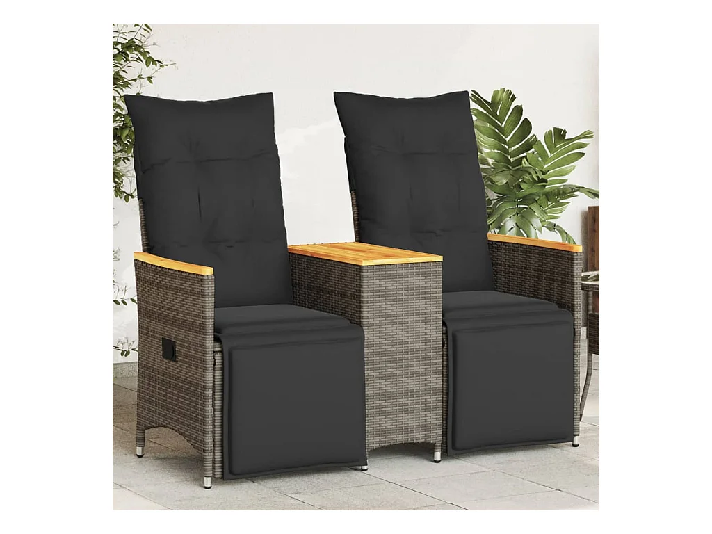 Tuinbank 2-zits verstelbaar met tafel poly rattan grijs