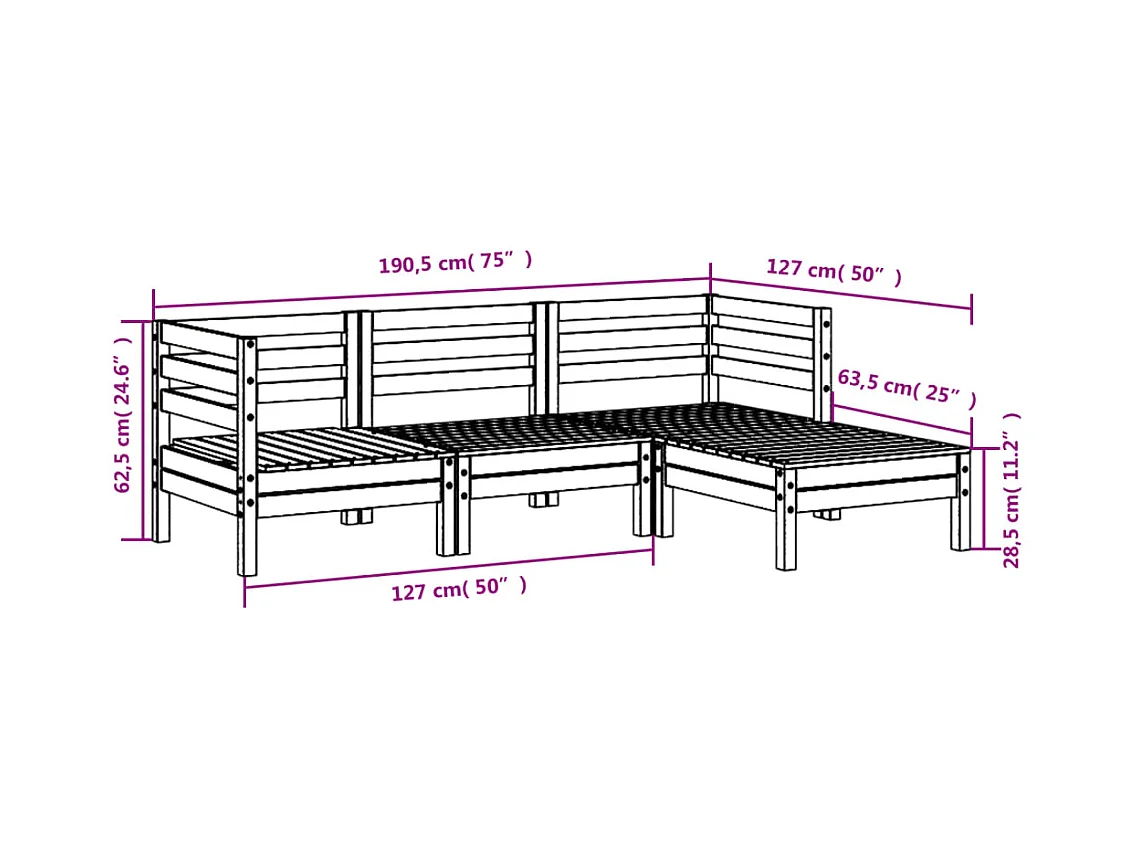 Tuinbank 3-zits met voetenbank massief grenenhout wasbruin
