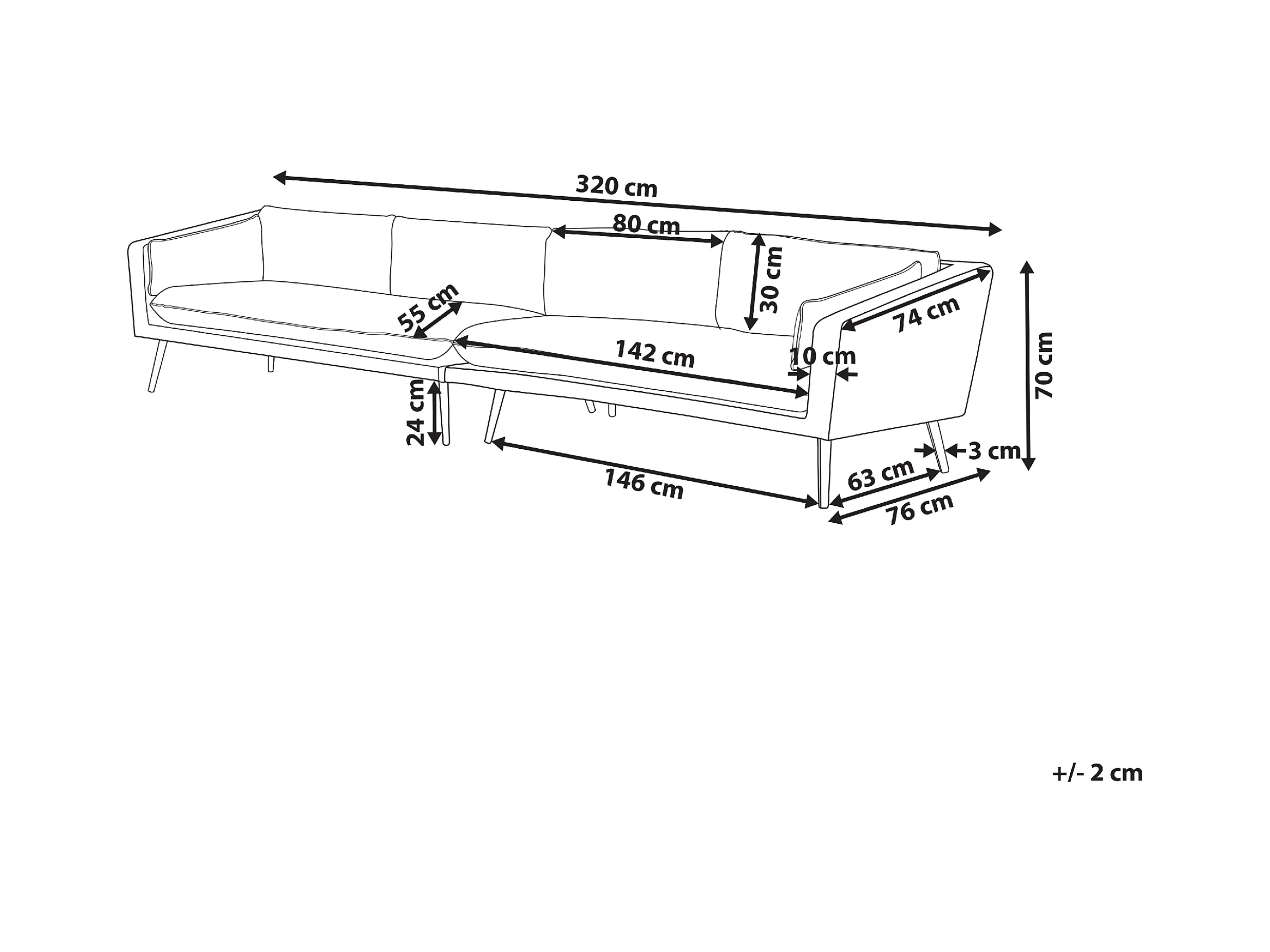 Tuin loungebank 3-zitter LORETELLO Linkerzijde Grijs