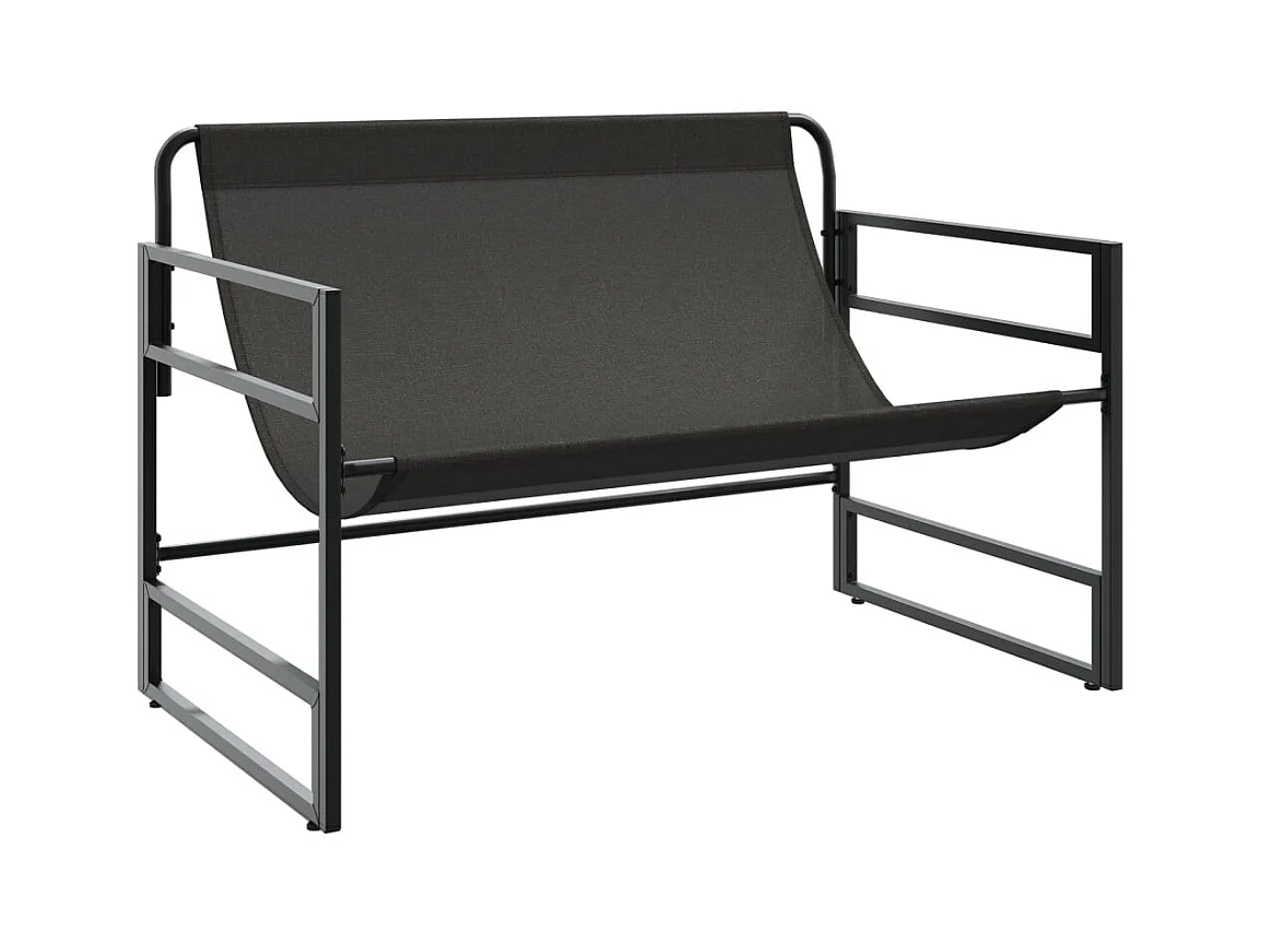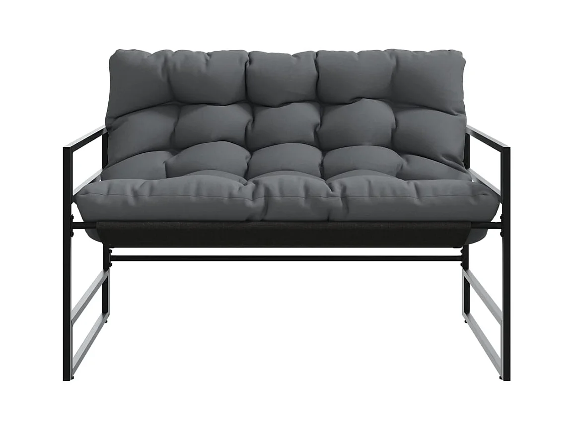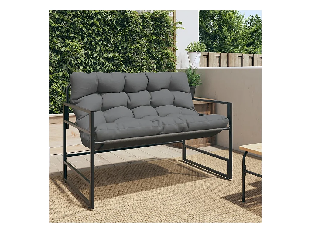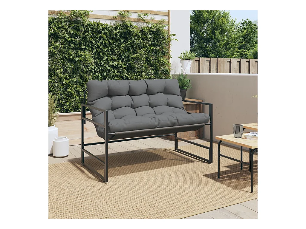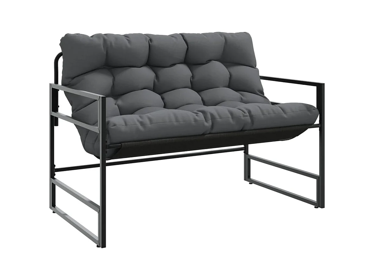Liggende tuinbank en kussens van lichtgrijs geweven hars