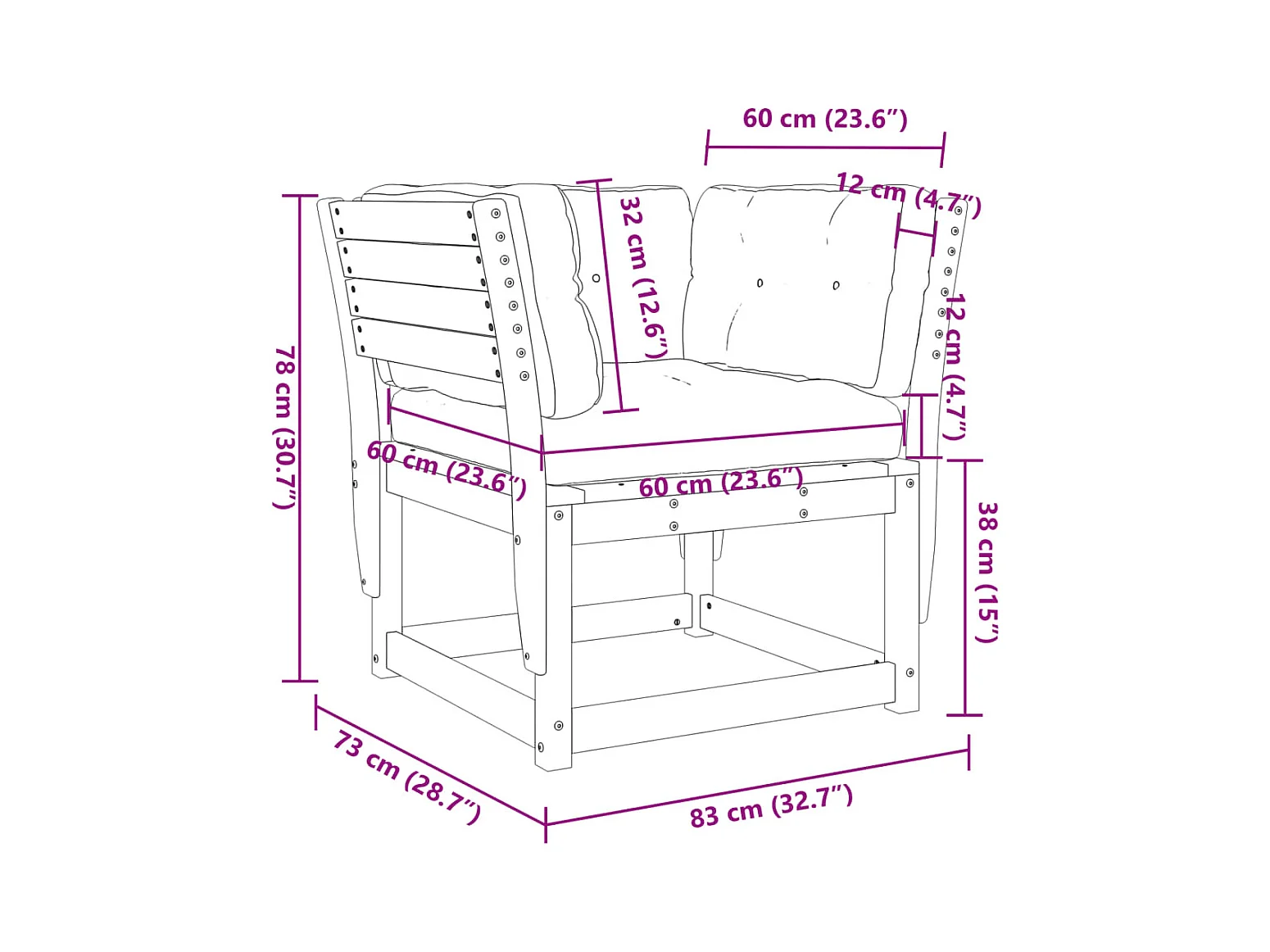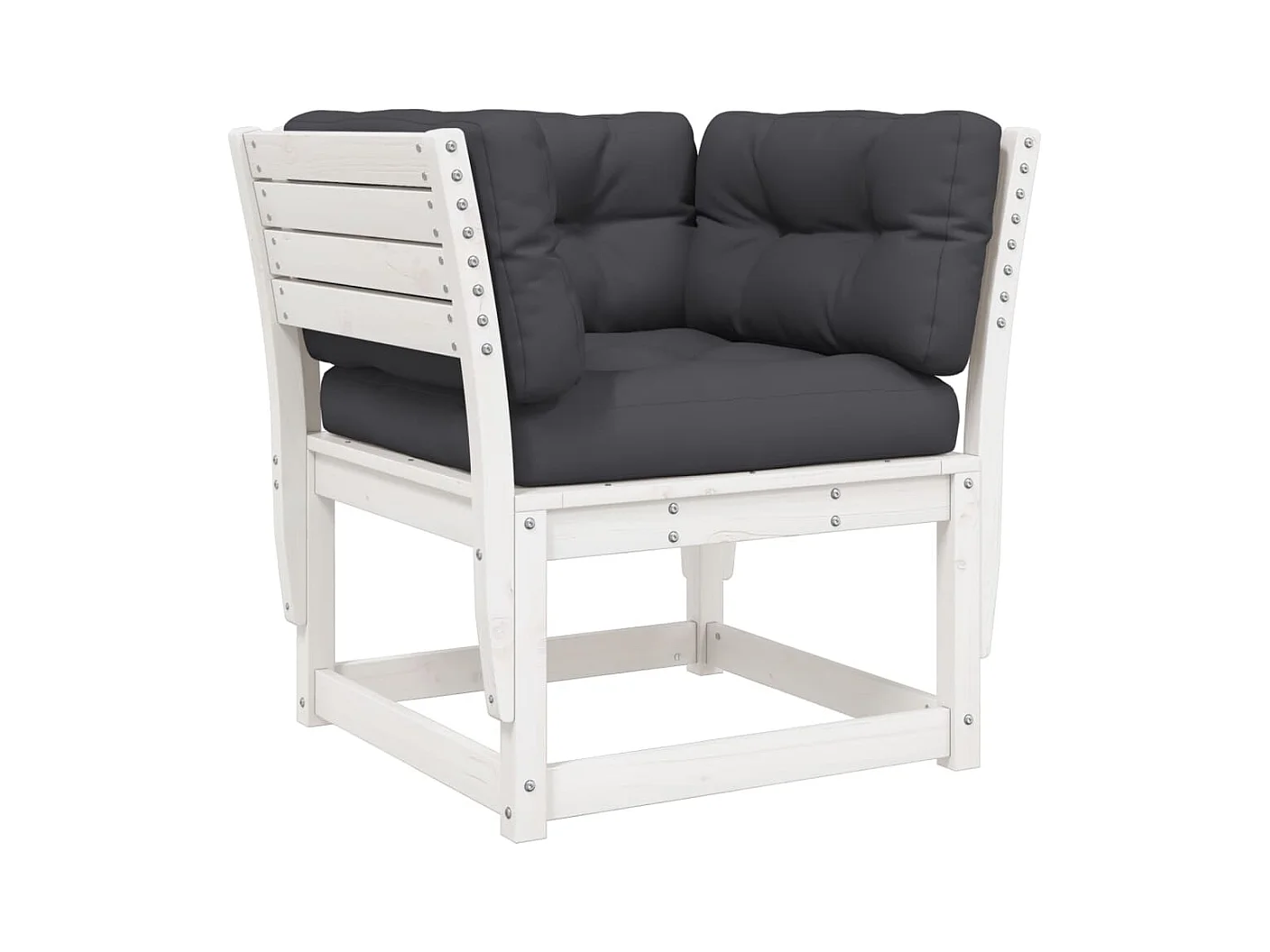 Tuinhoekbank met kussens 73x73x78 cm massief grenenhout wit