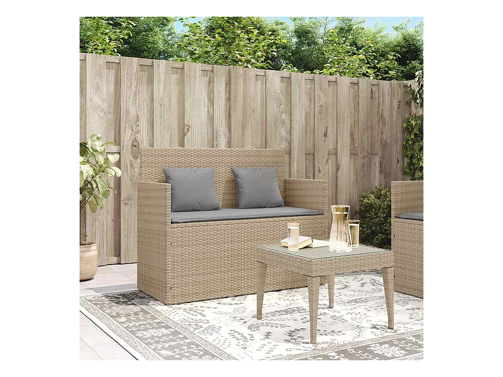 Tuinbank met beige geweven harskussens