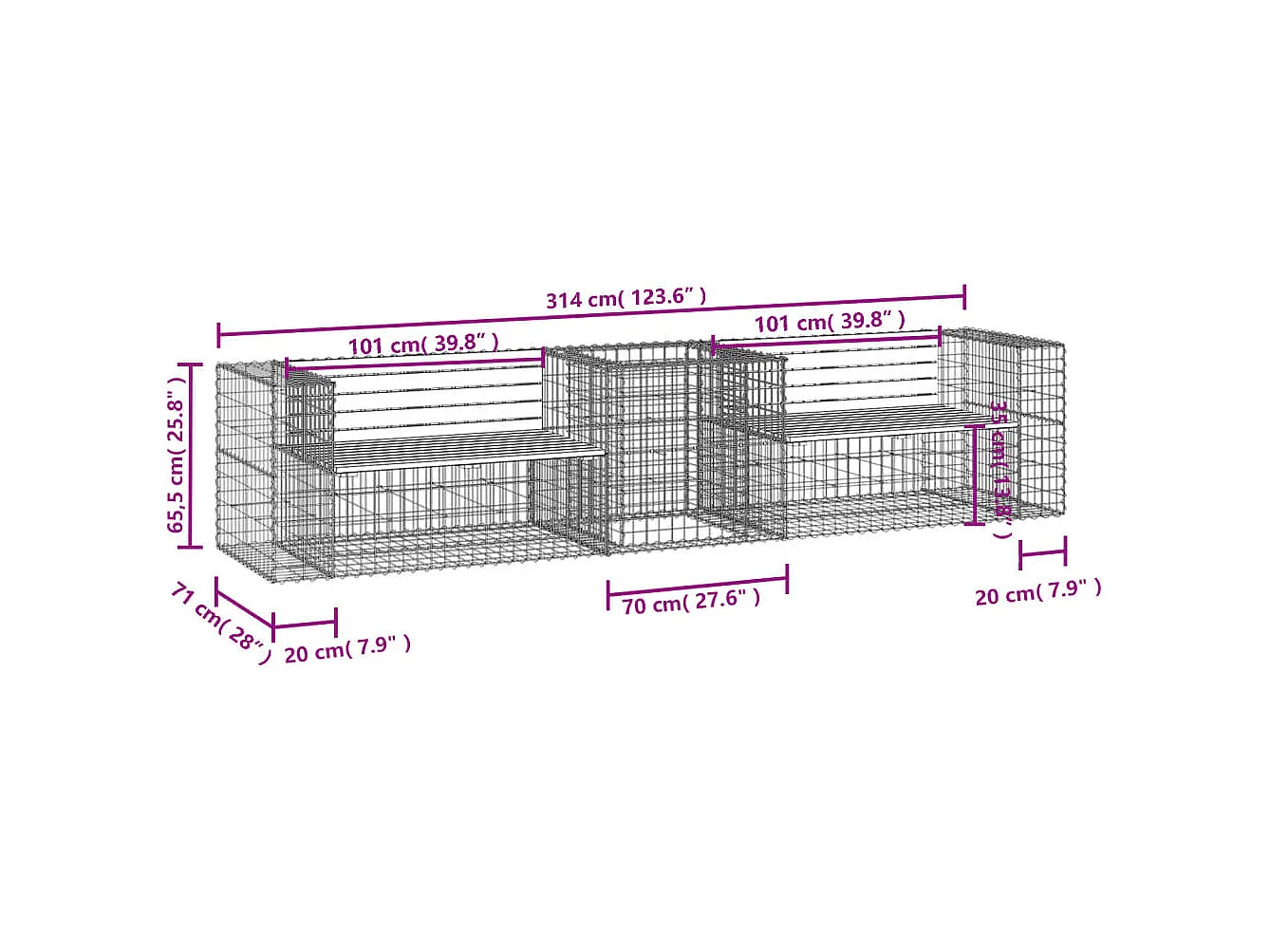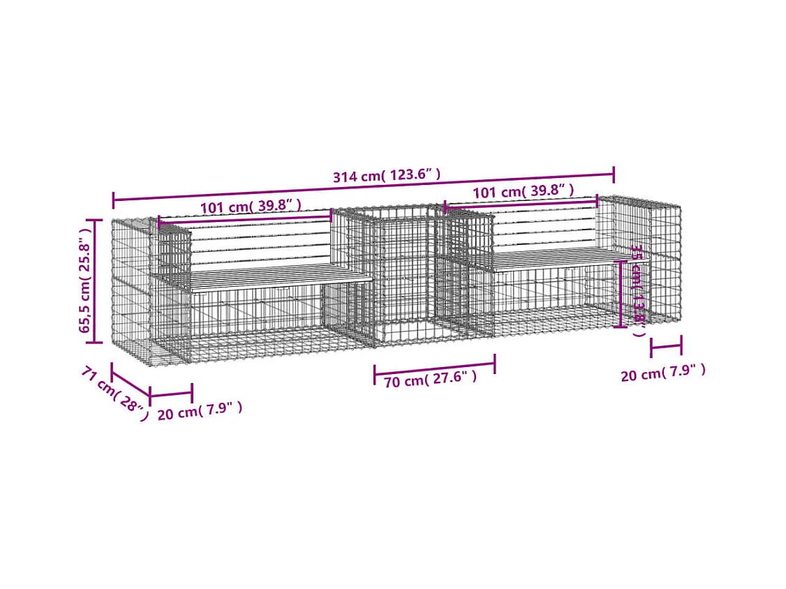 Gabion design tuinbank 347x71x65,5cm geïmpregneerd grenenhout