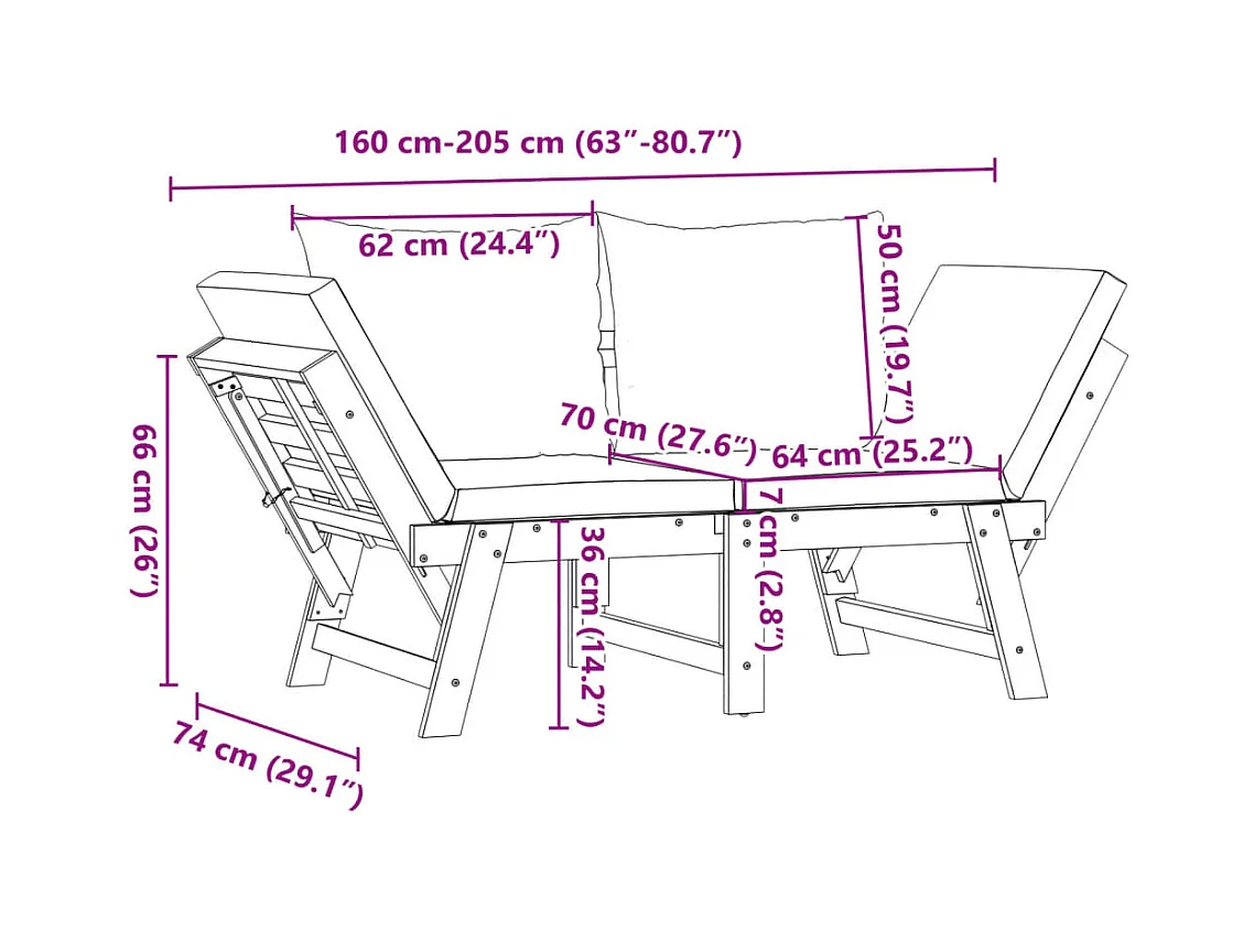 Tuinbank met kussens 2 in 1 massief acaciahout