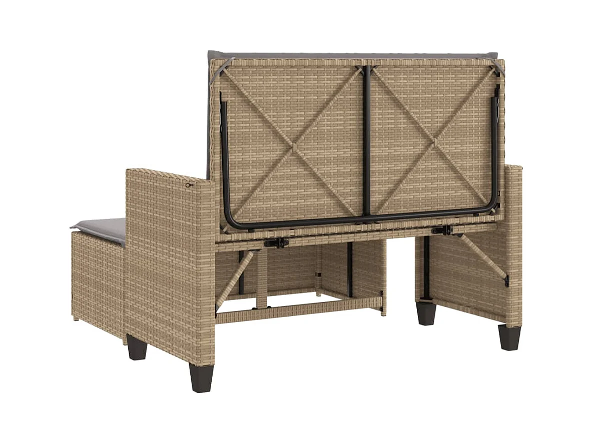 Tuinbank met kussens en beige gevlochten hars voetenbankje