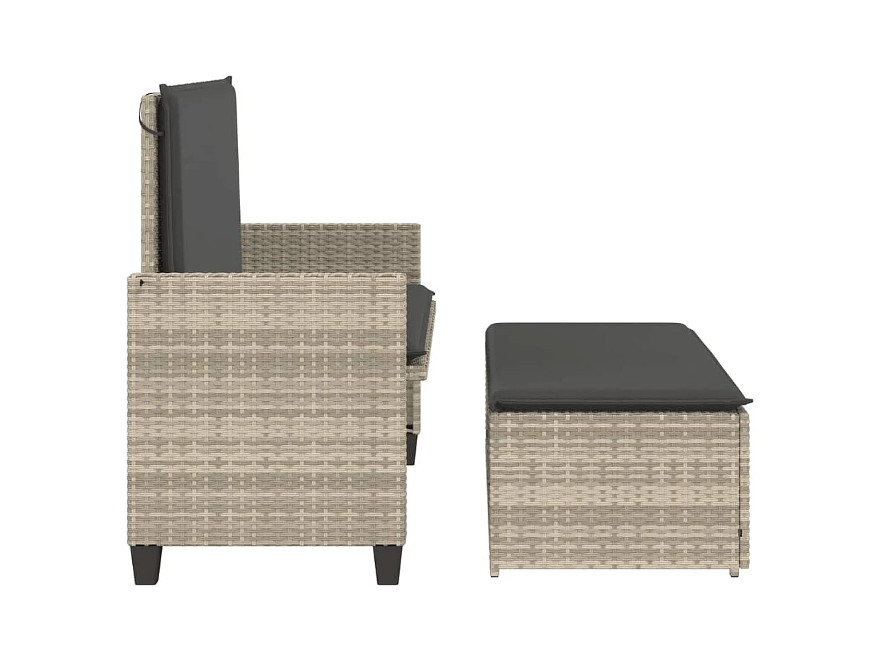 Tuinbank met kussens en voetenbankje lichtgrijs polyrotan