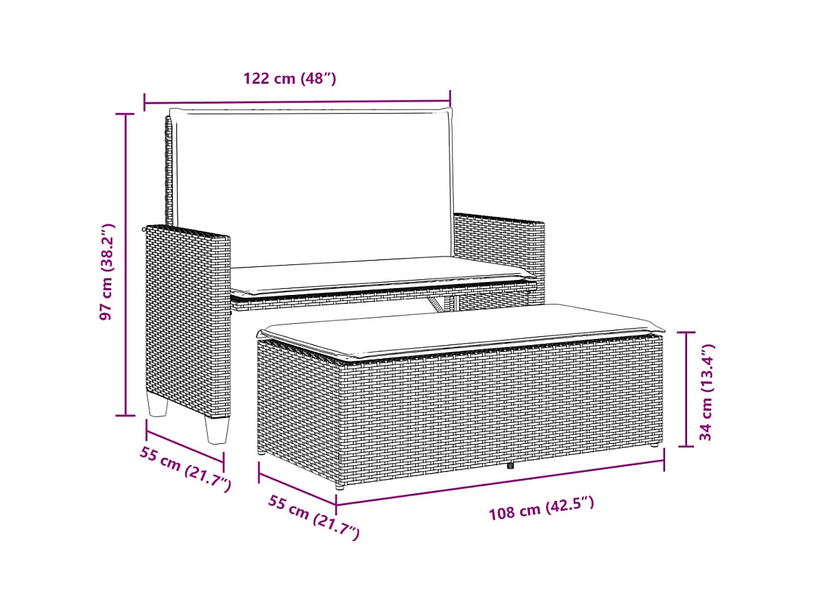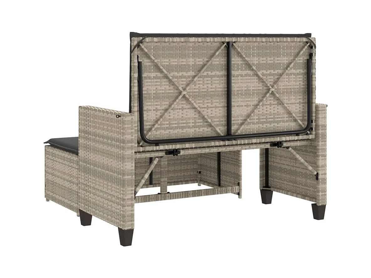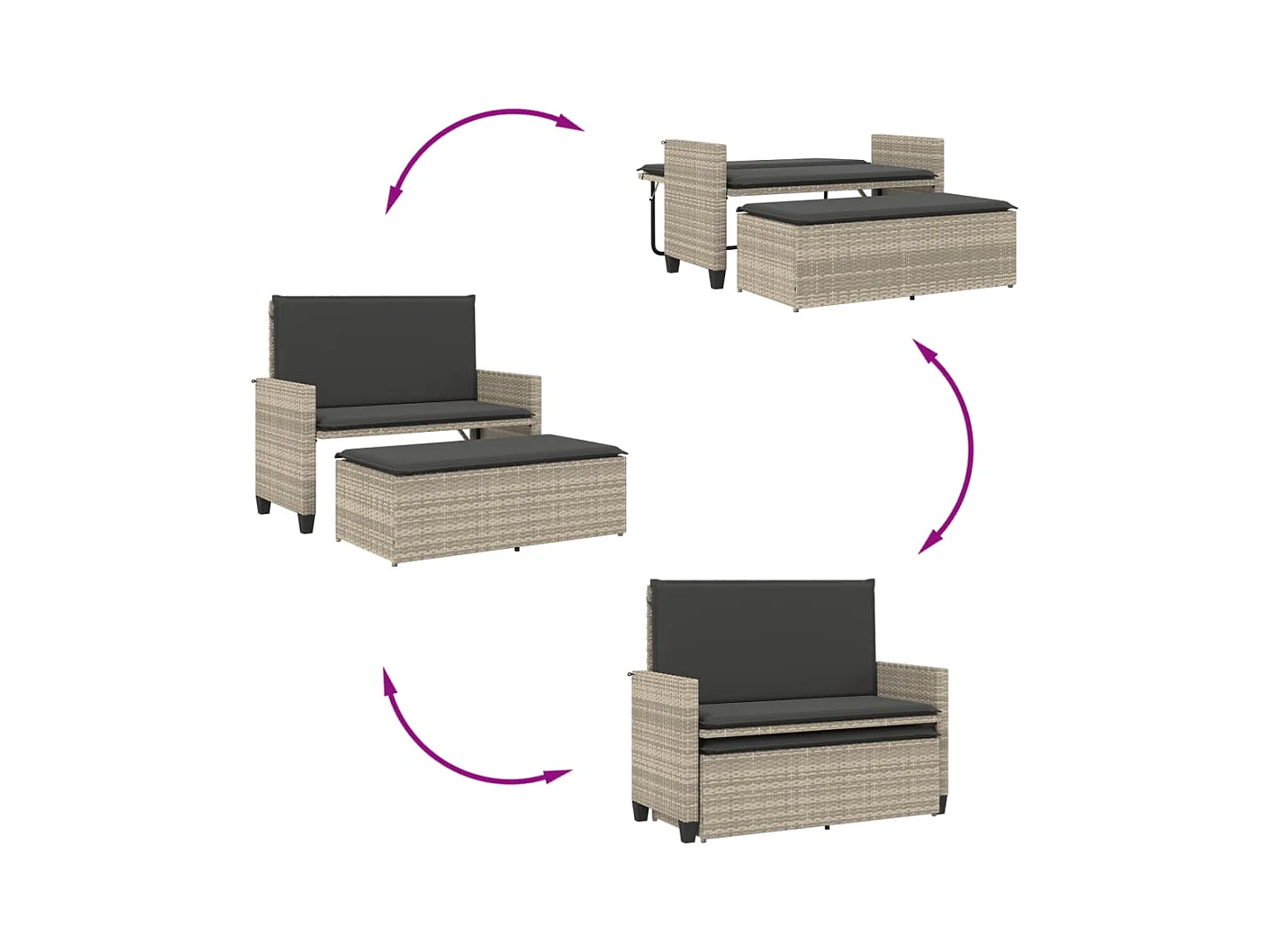 Tuinbank met kussens en voetenbank in grijs geweven hars