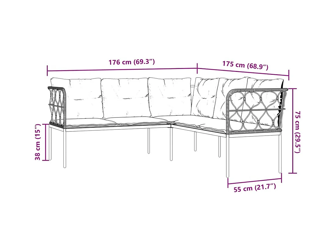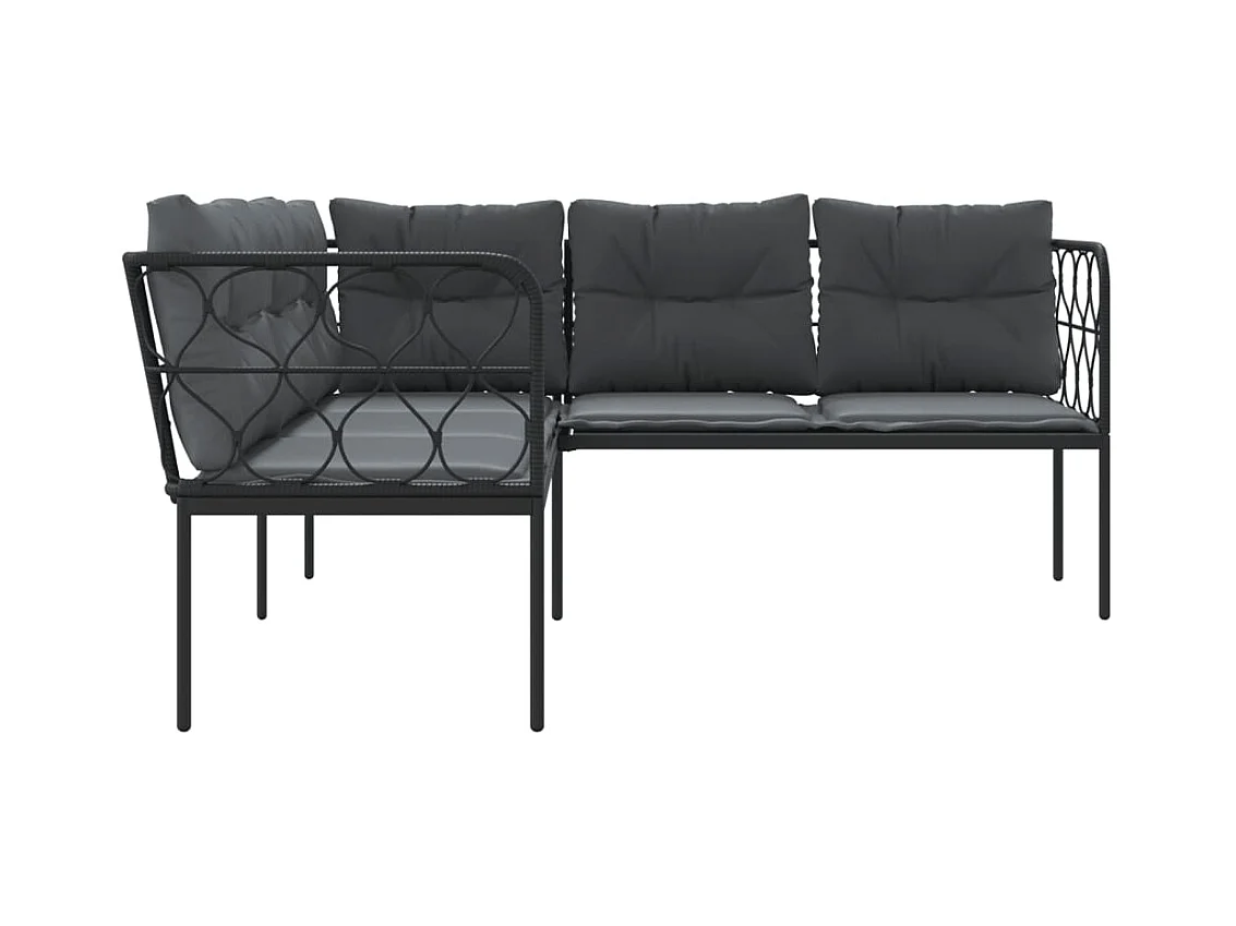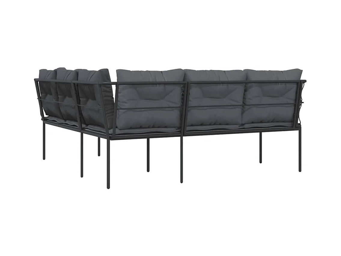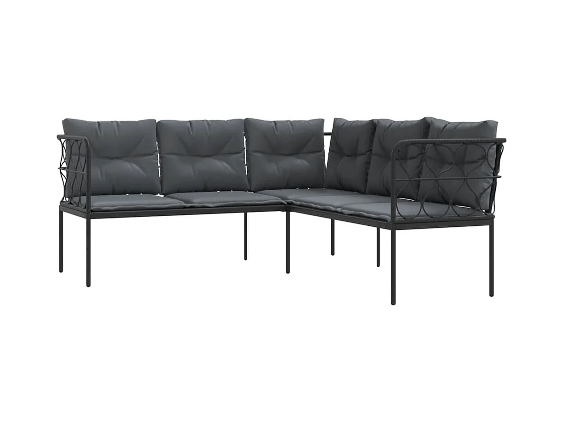 Tuinbank met kussens L-vormig staal en textileen zwart