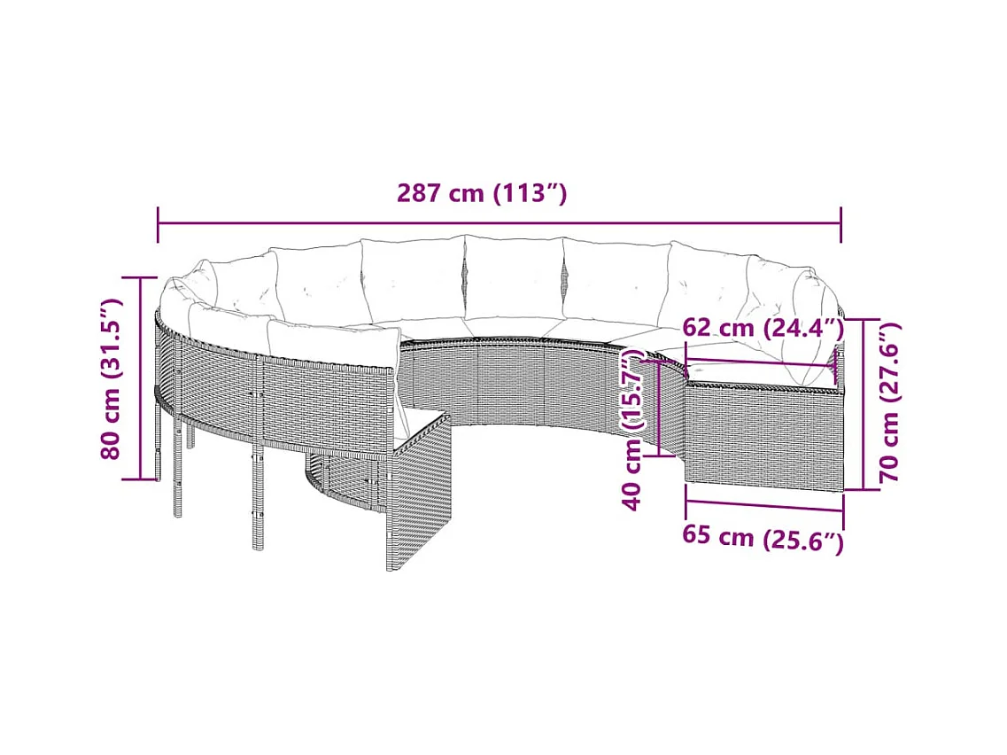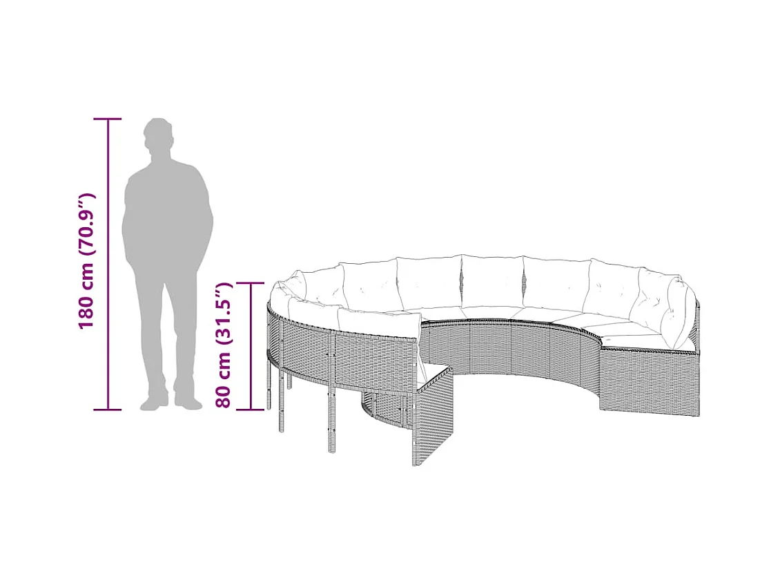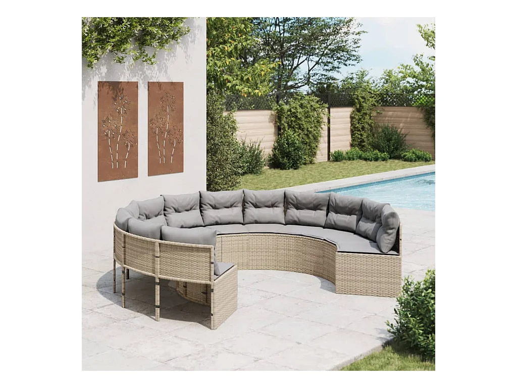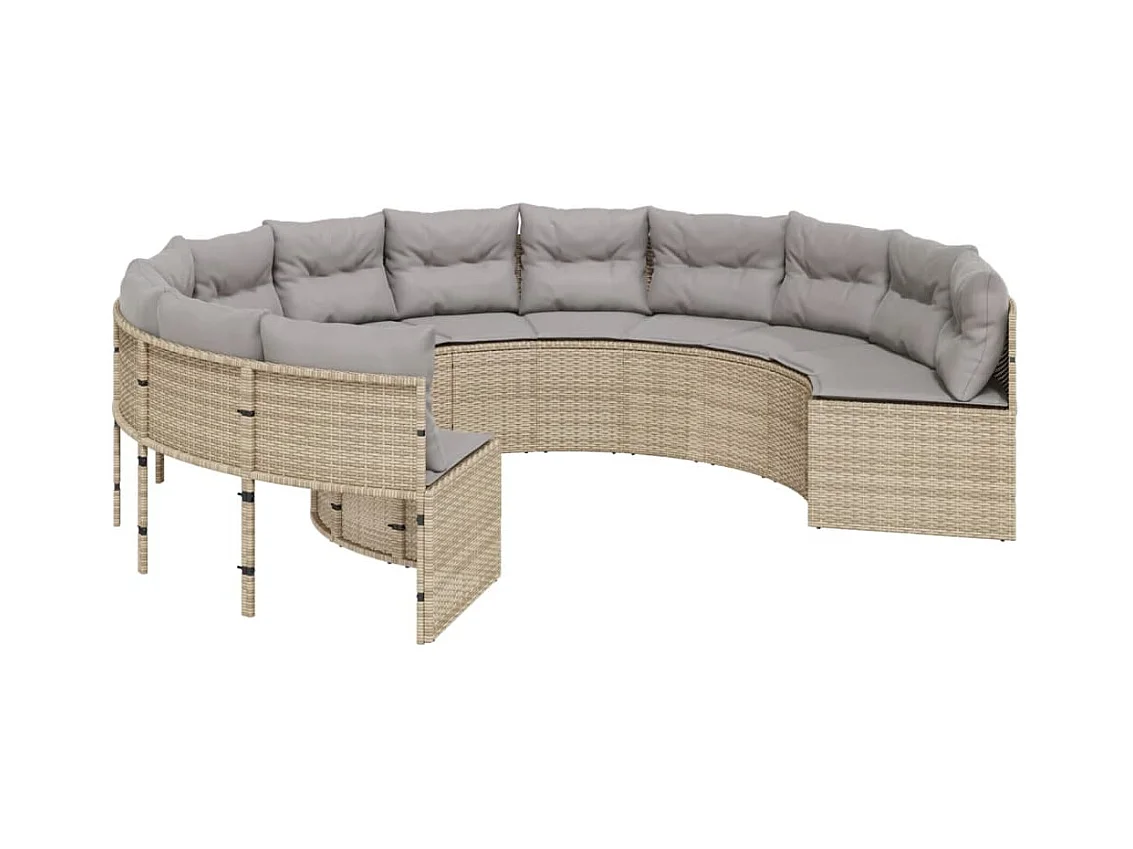 Tuinbank met tafel en kussens halfrond poly rattan beige