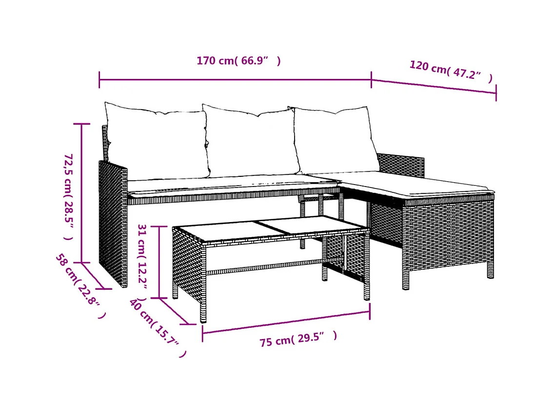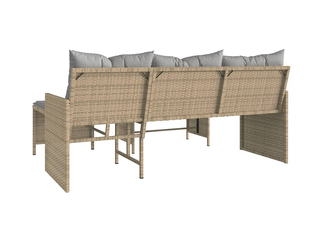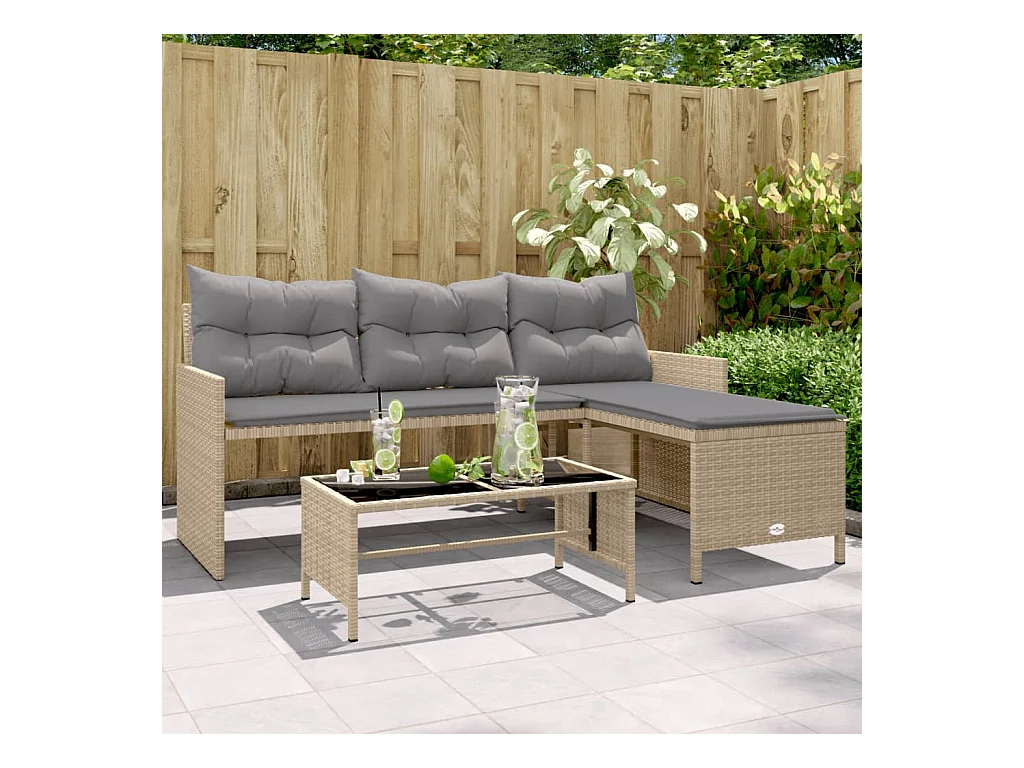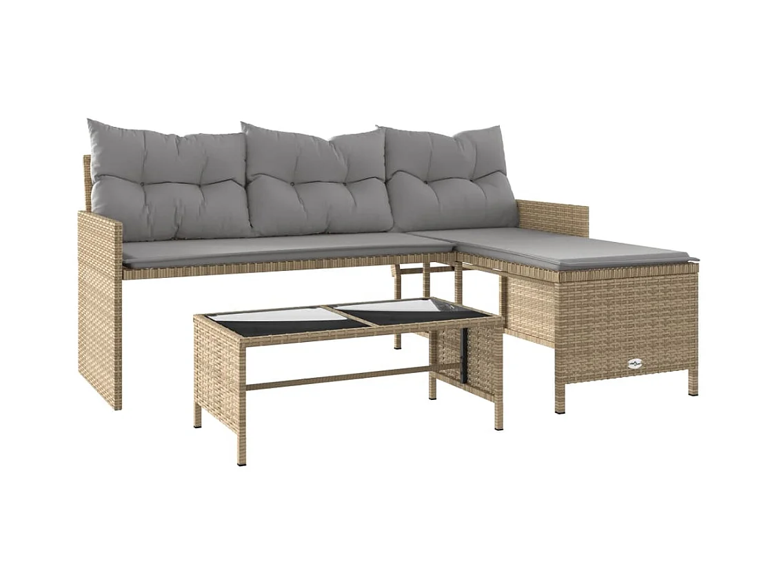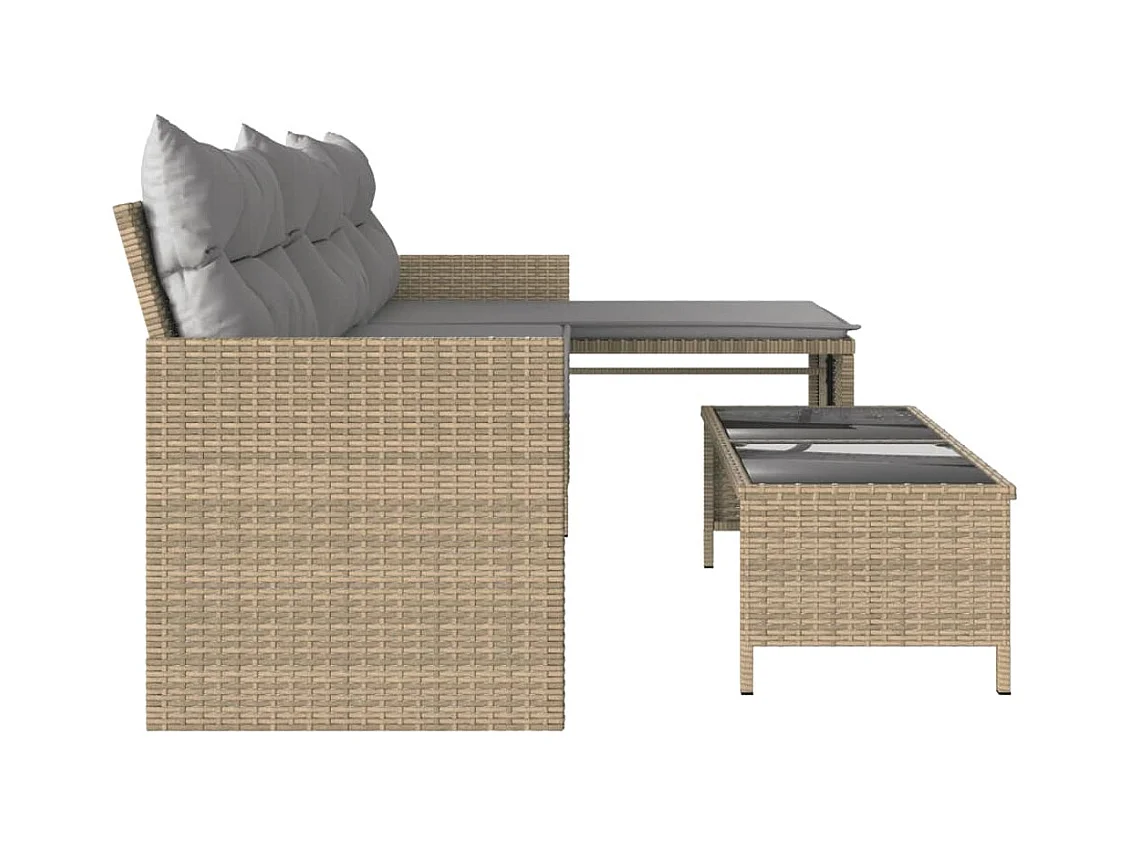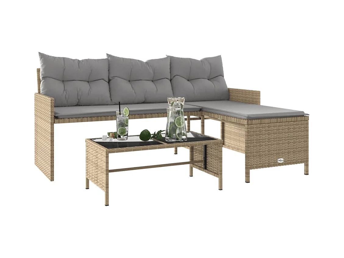 Tuinbank met tafel en kussens L-vormig poly rattan beige