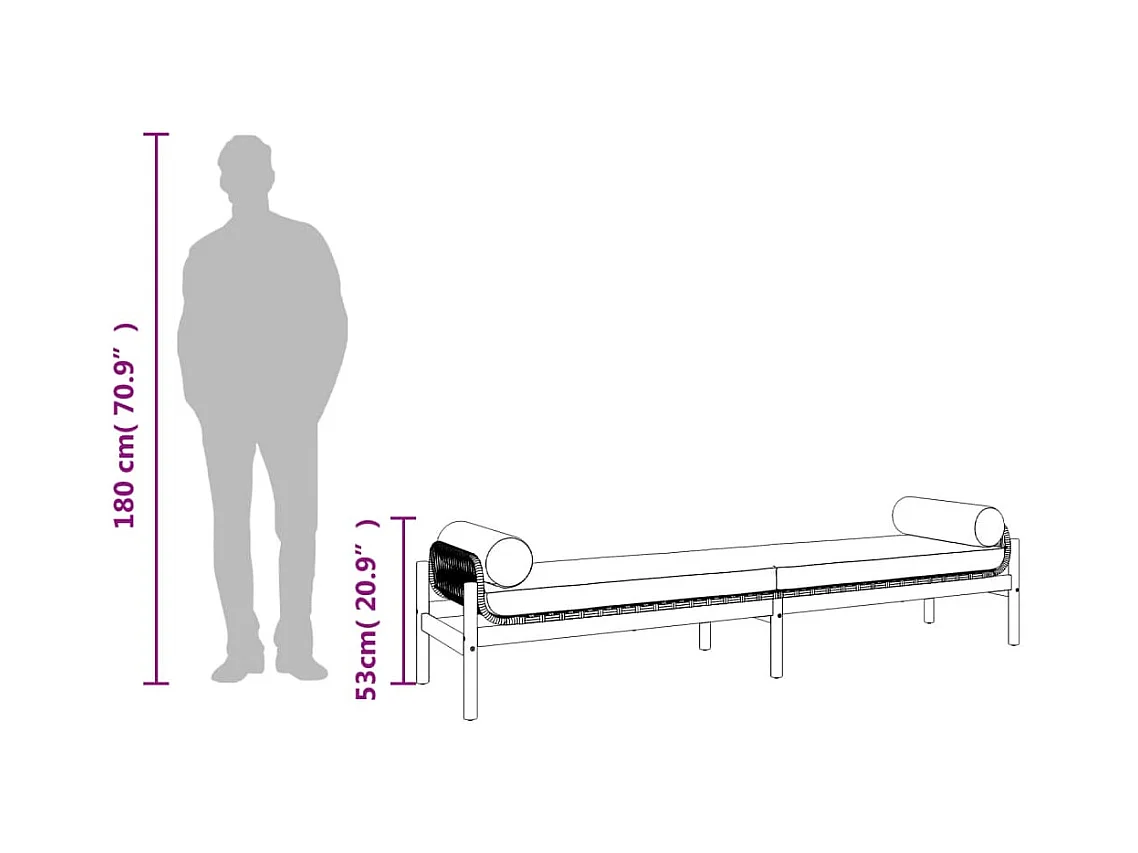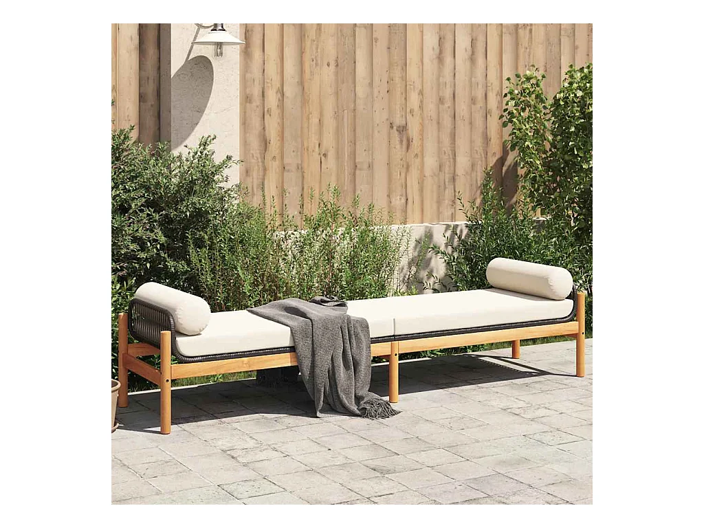 Liggende tuinbank met kussens 107 cm polyrotan zwart