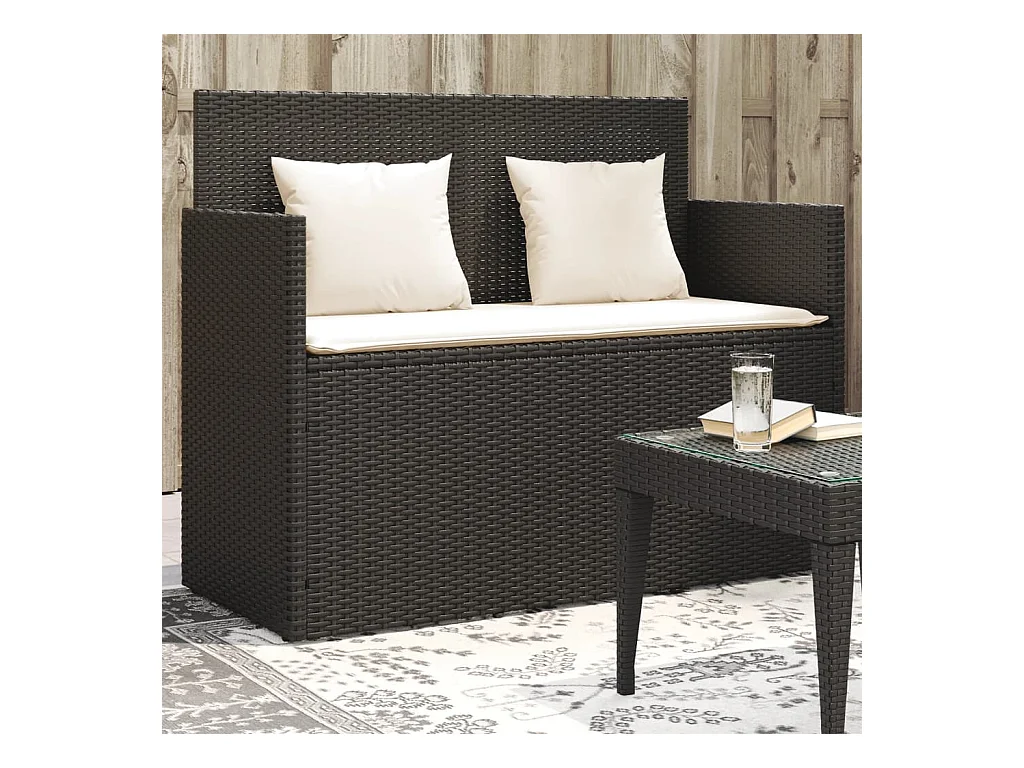 Tuinbank met kussen 138 cm Zwart gevlochten hars