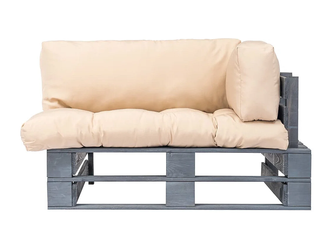 Tuinbank pallet met zandkleurige kussens grenenhout