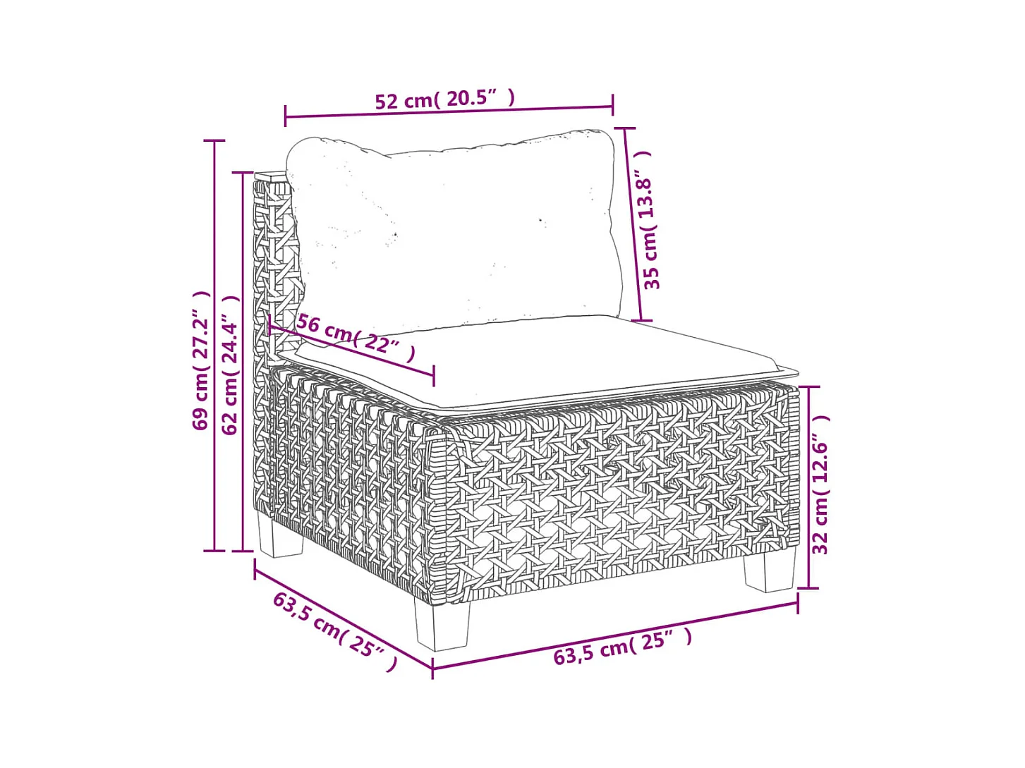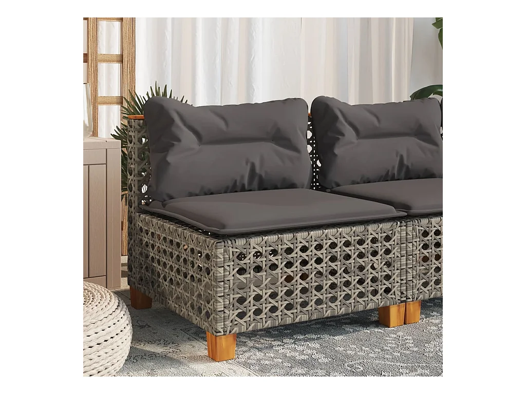 Tuinbank zonder armleuning met kussens poly rattan grijs